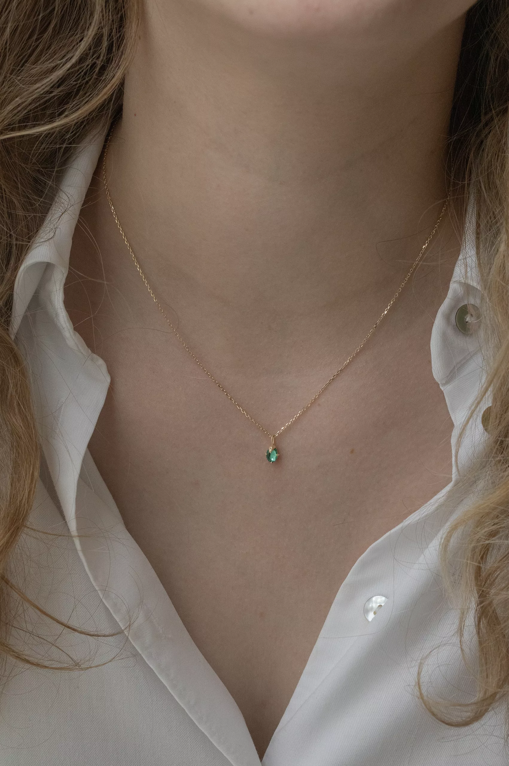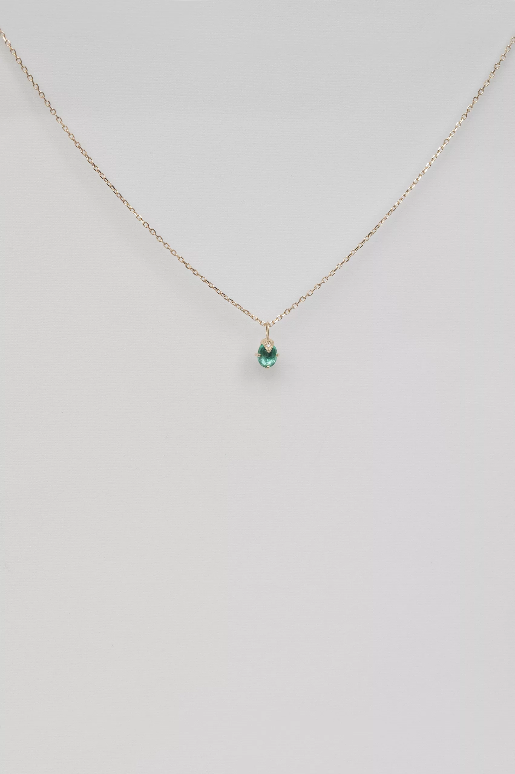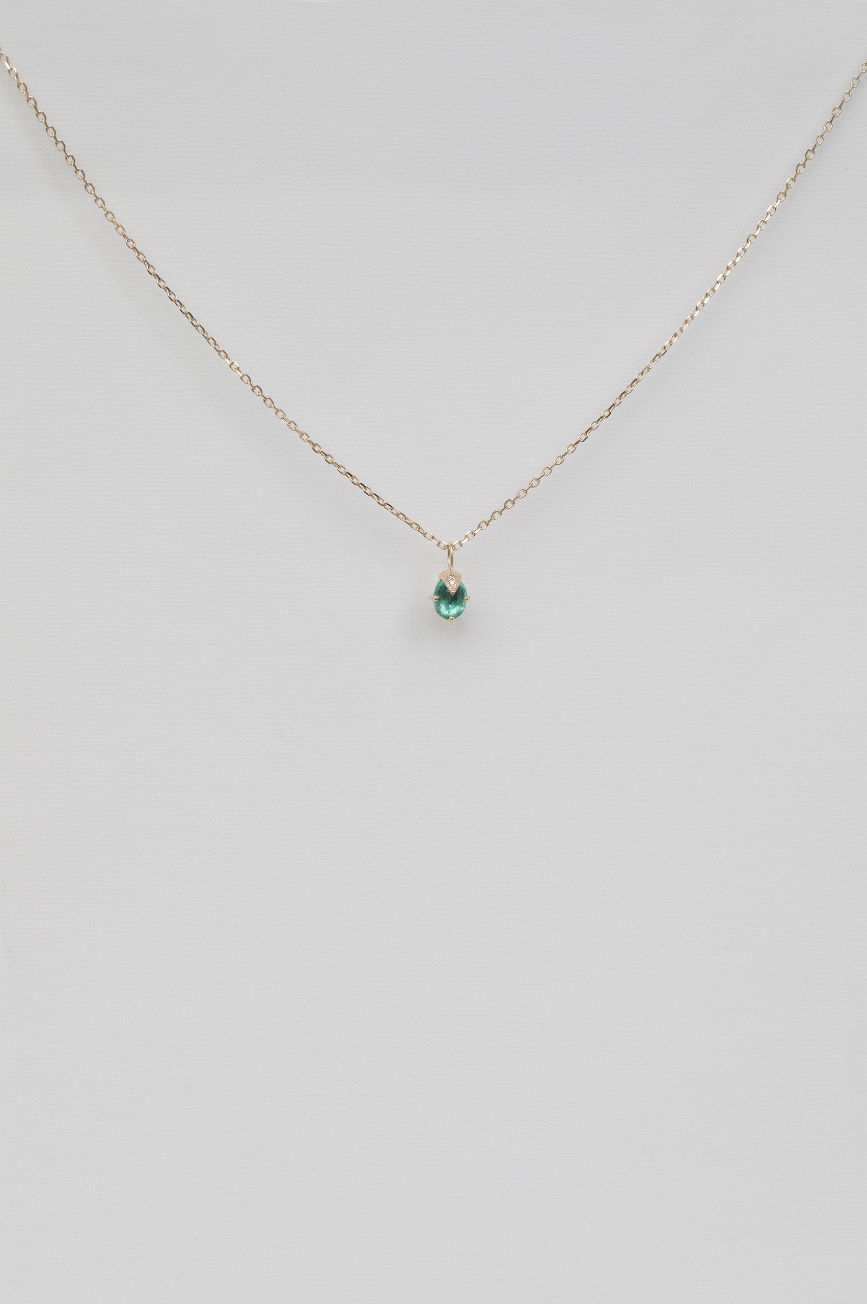 Celine Daoust 14k light yellow gold chain necklace with one emerald and diamond claw chain necklace. The stone color is an intense green.