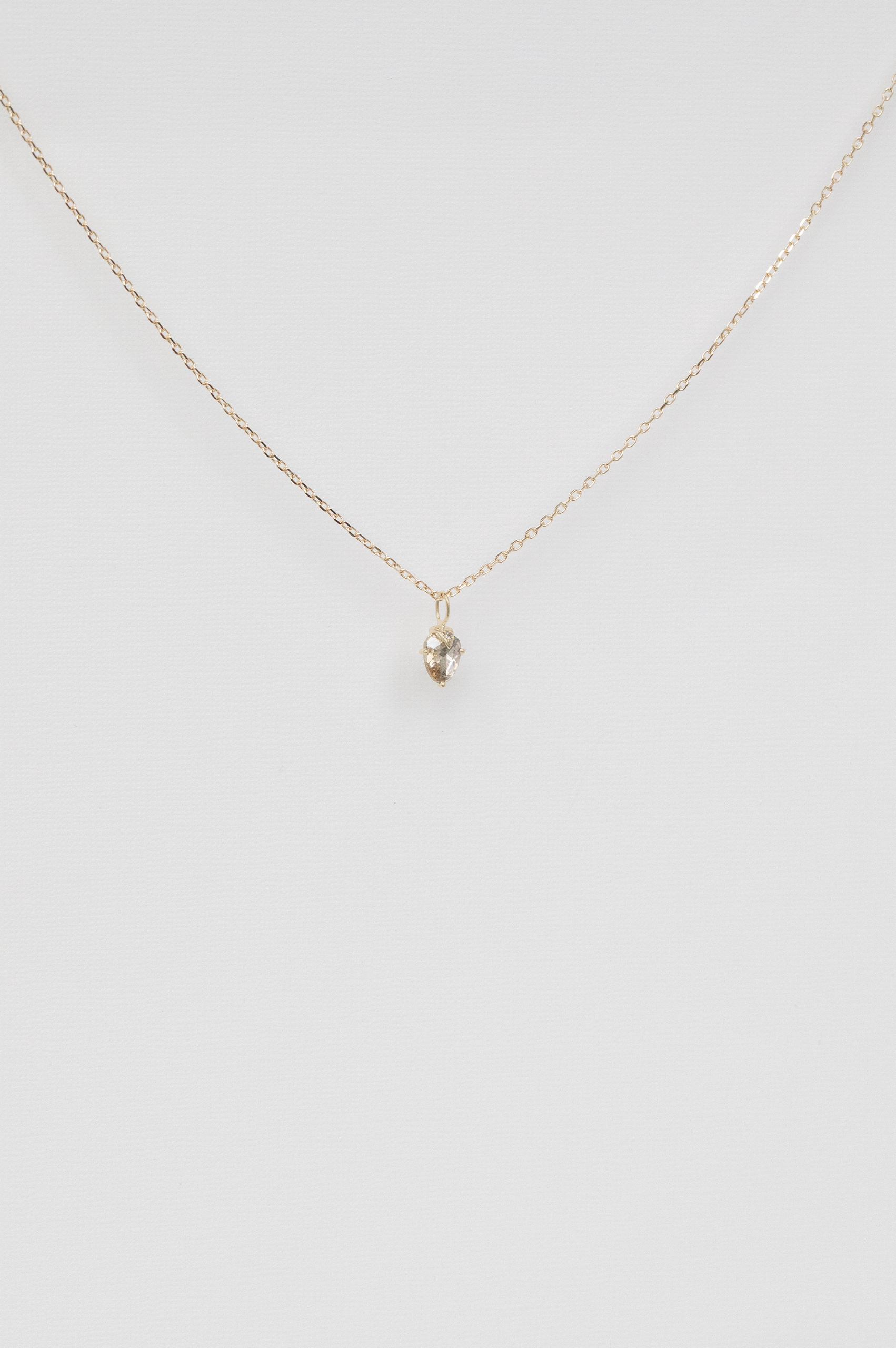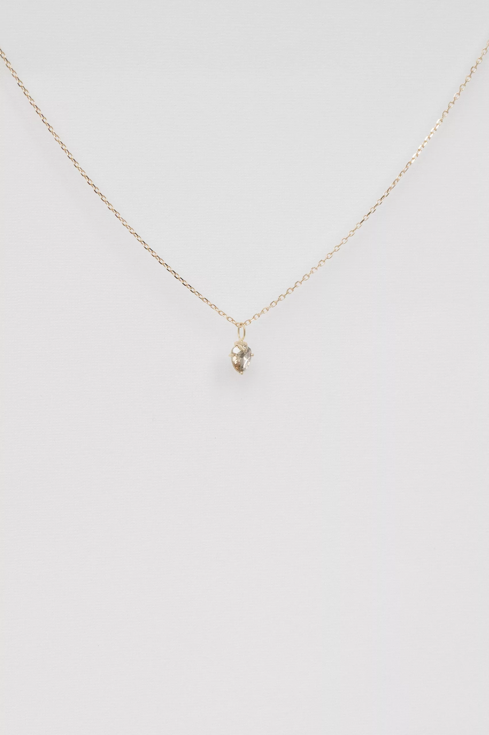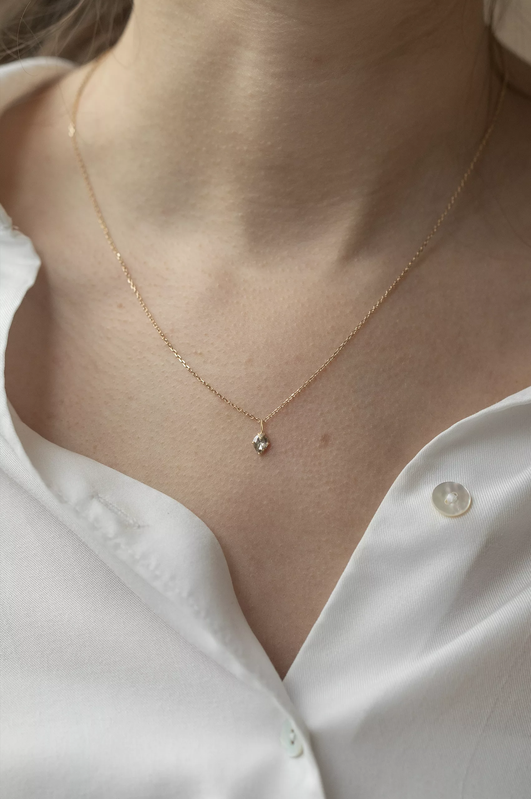 Celine Daoust 14k light yellow gold chain claw necklace with one grey diamond and diamond. The stone comes in a gradient of light and dark grey.