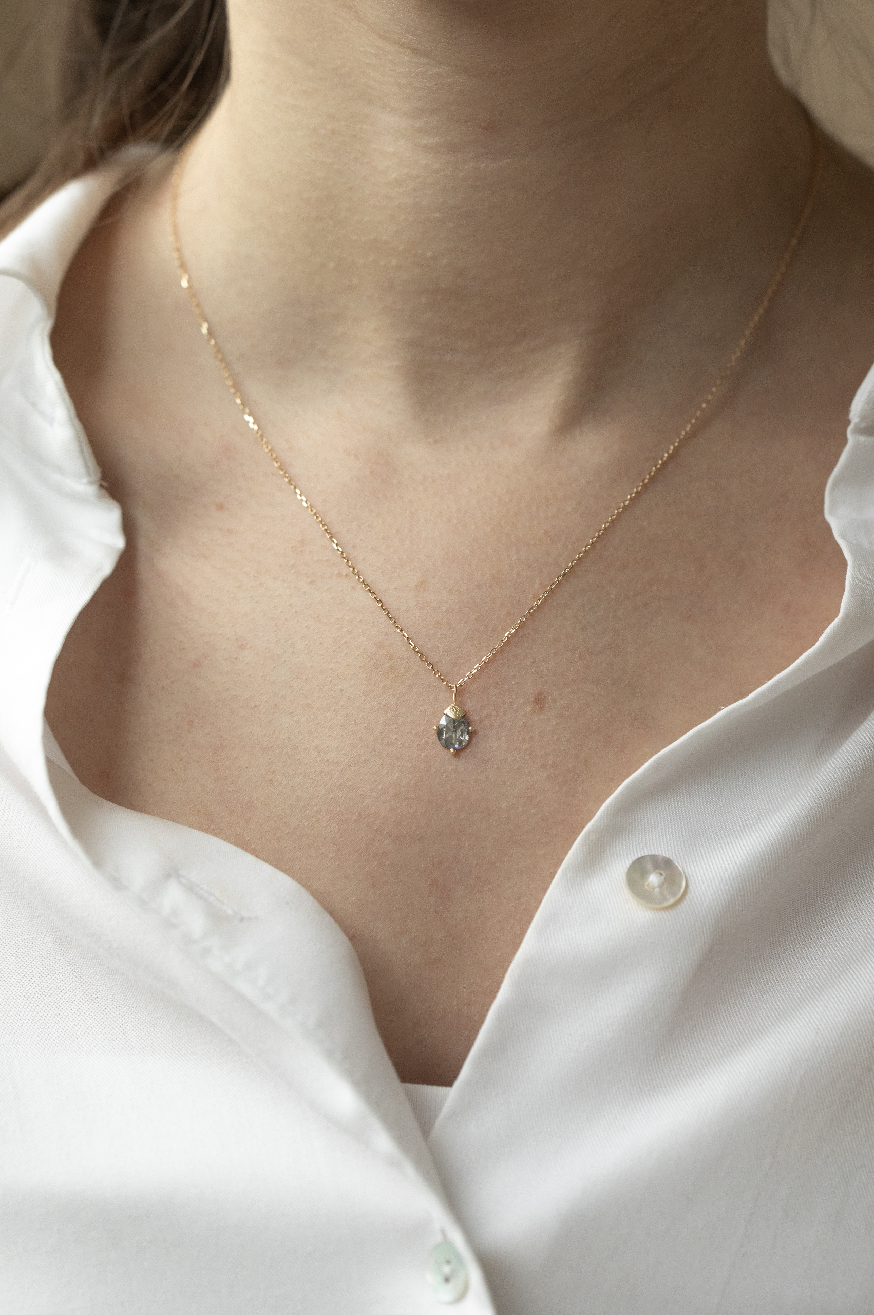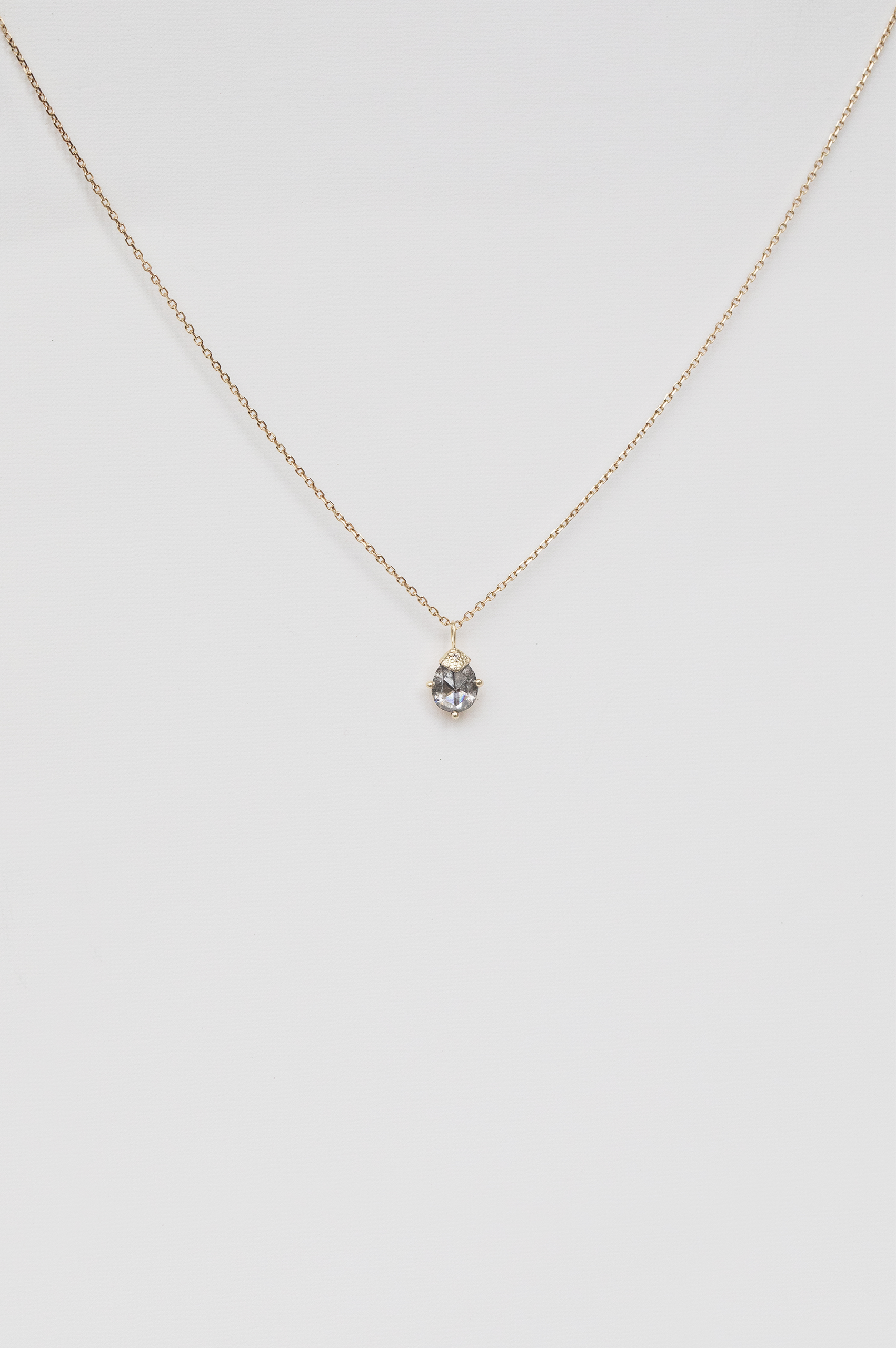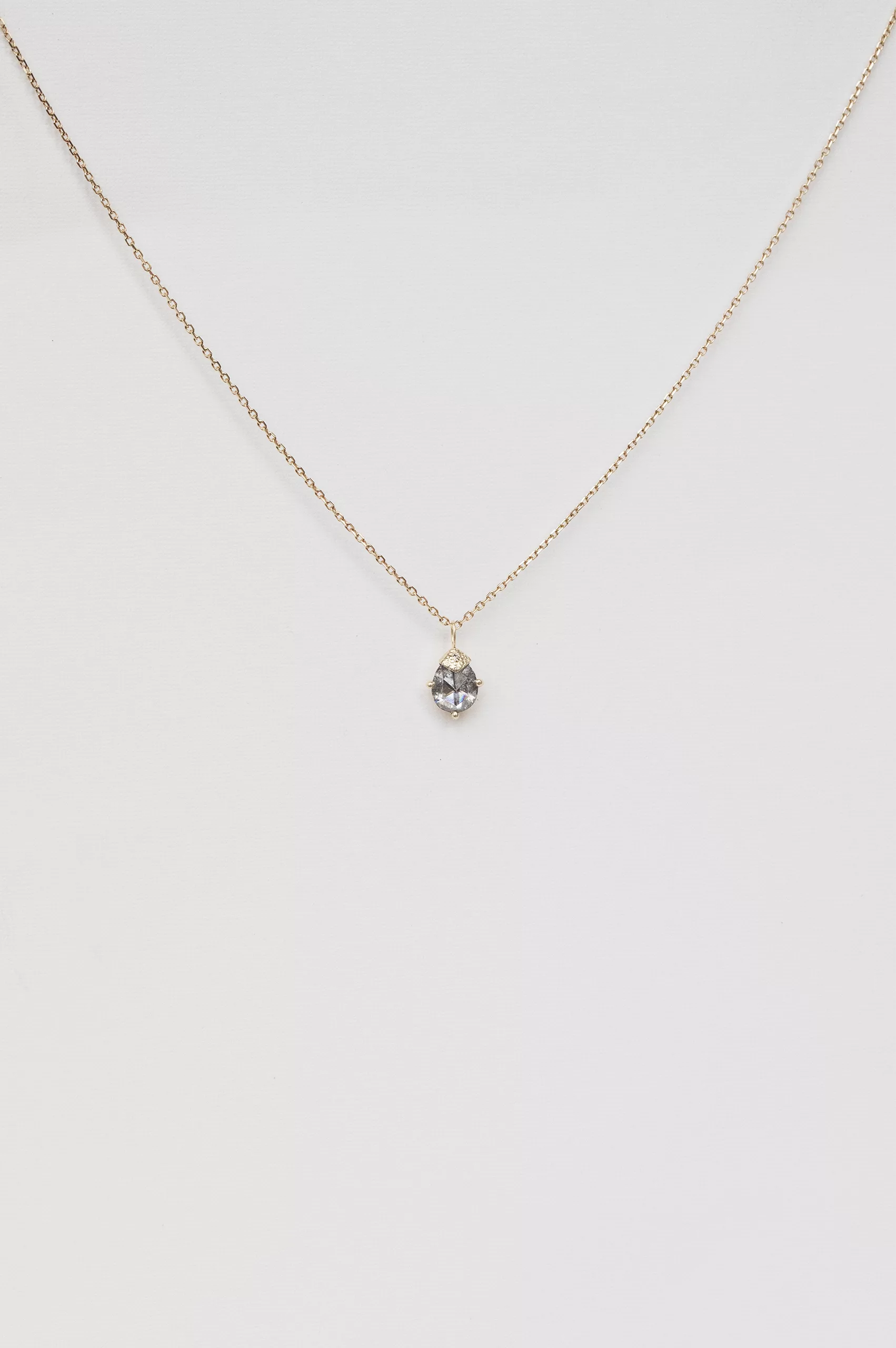Celine Daoust 14k light yellow gold chain claw necklace with one grey diamond and diamond. The stone comes in a gradient of light and dark grey.