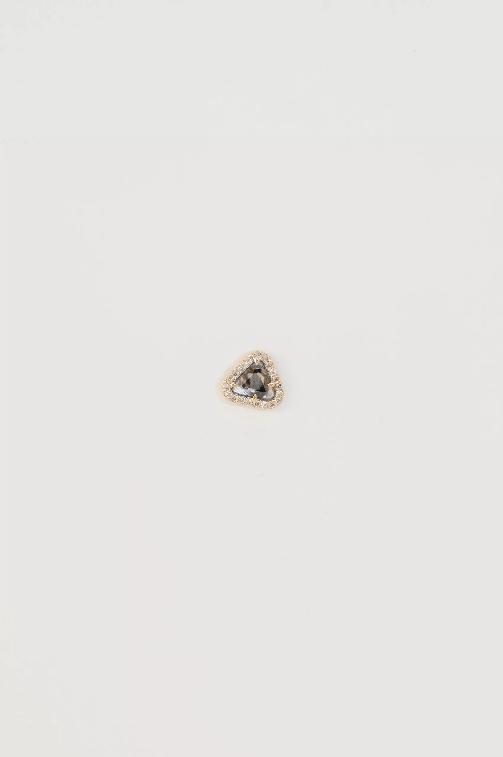 Celine Daoust 14k light yellow gold stella earrings with grey diamond surrounded by diamonds. The stone comes in a gradient of light and dark grey.