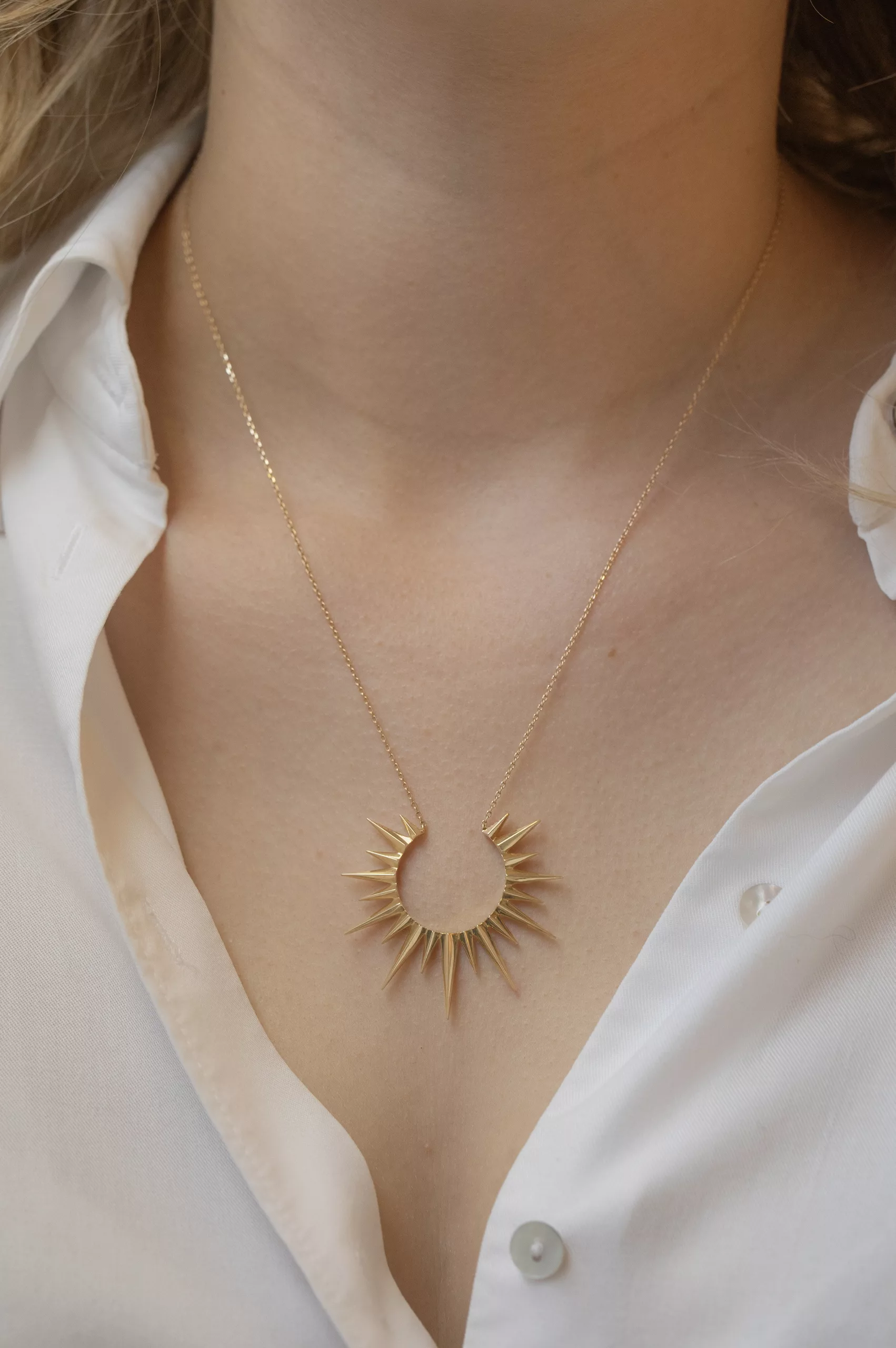 This magnificent full sun pendant on thin gold chain is an iconic celine daoust silhouette. This is the big size.