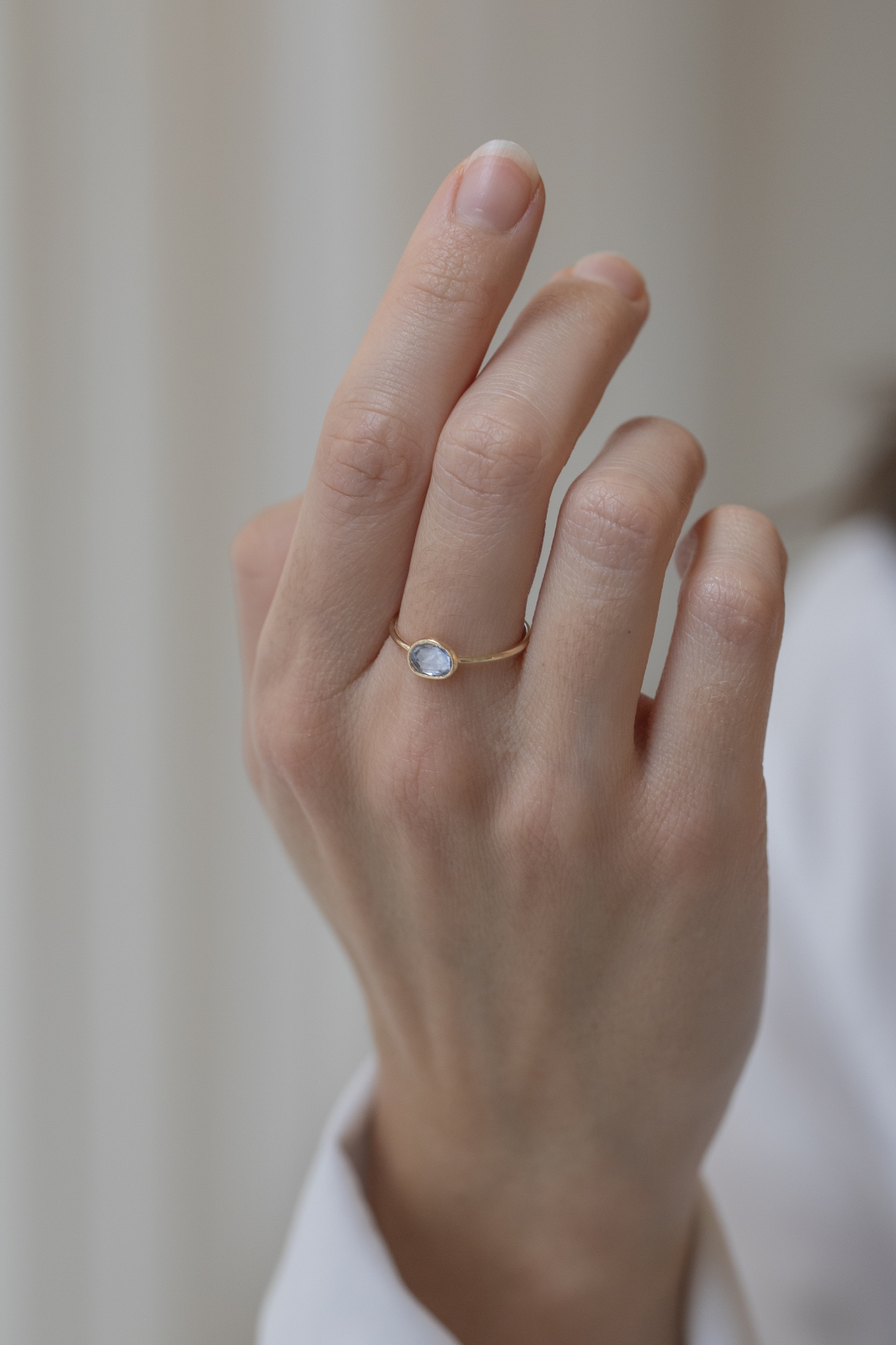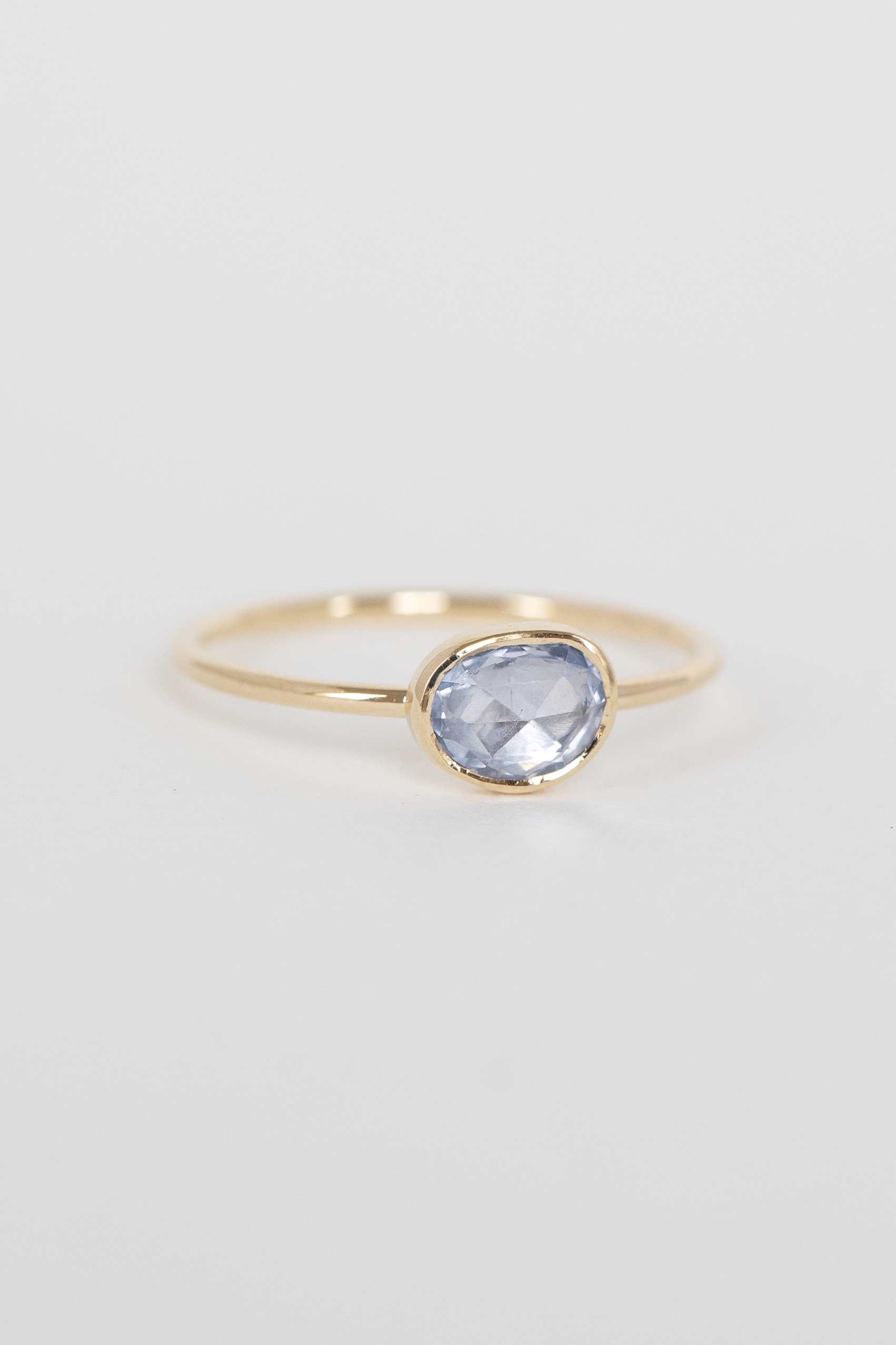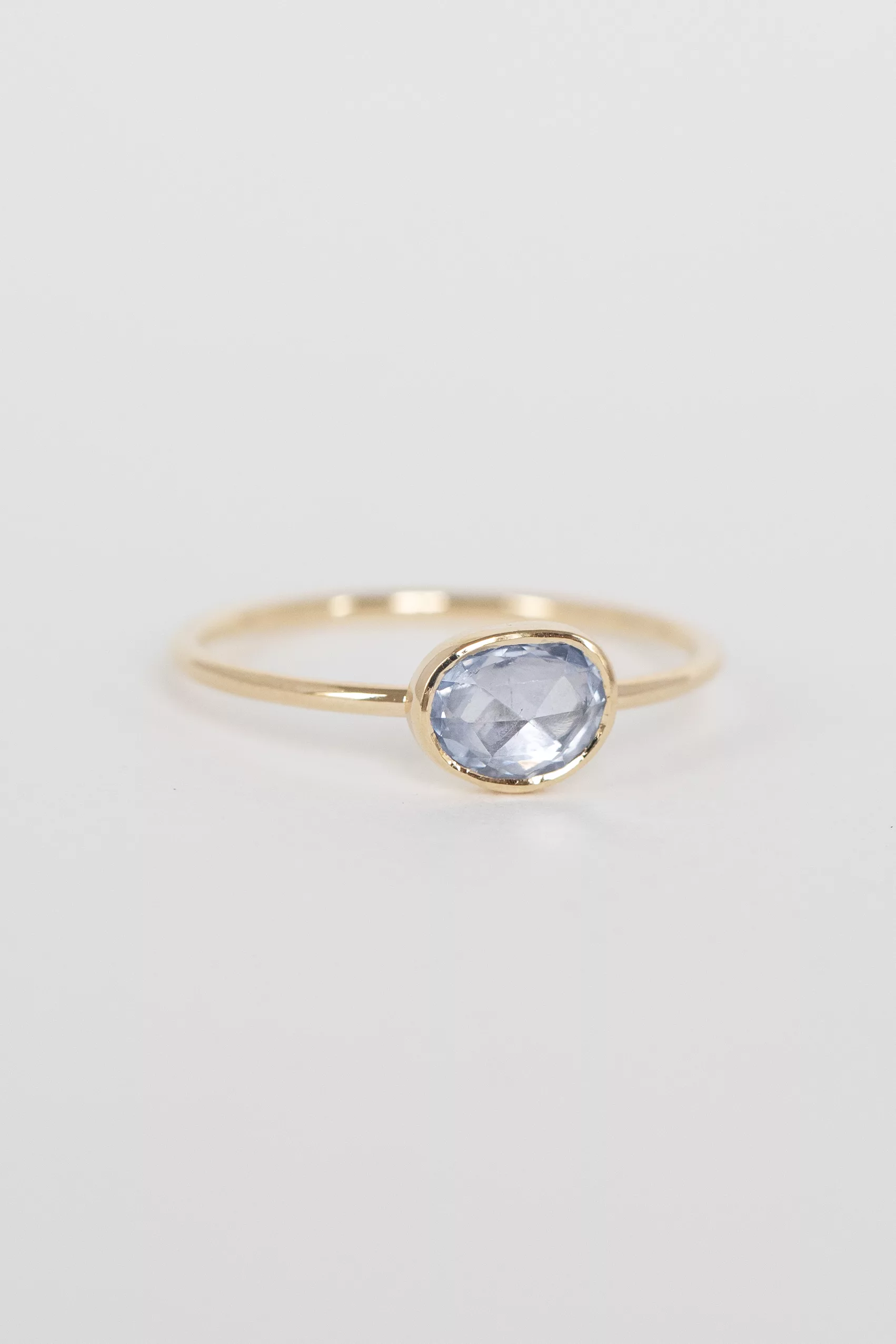 Celine Daoust 14k light yellow gold faye ring with one light blue sapphire. The stone comes in a gradient of light blue and grey.