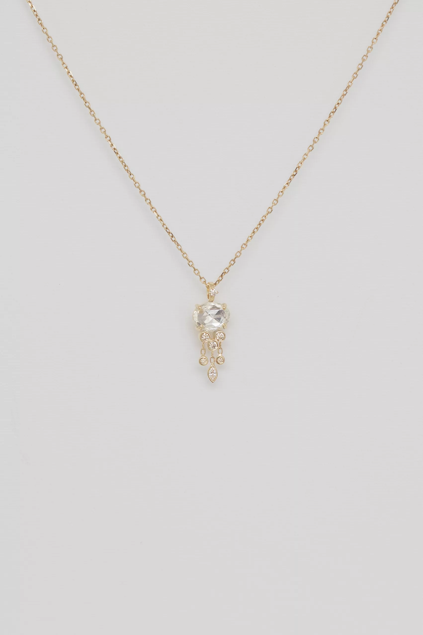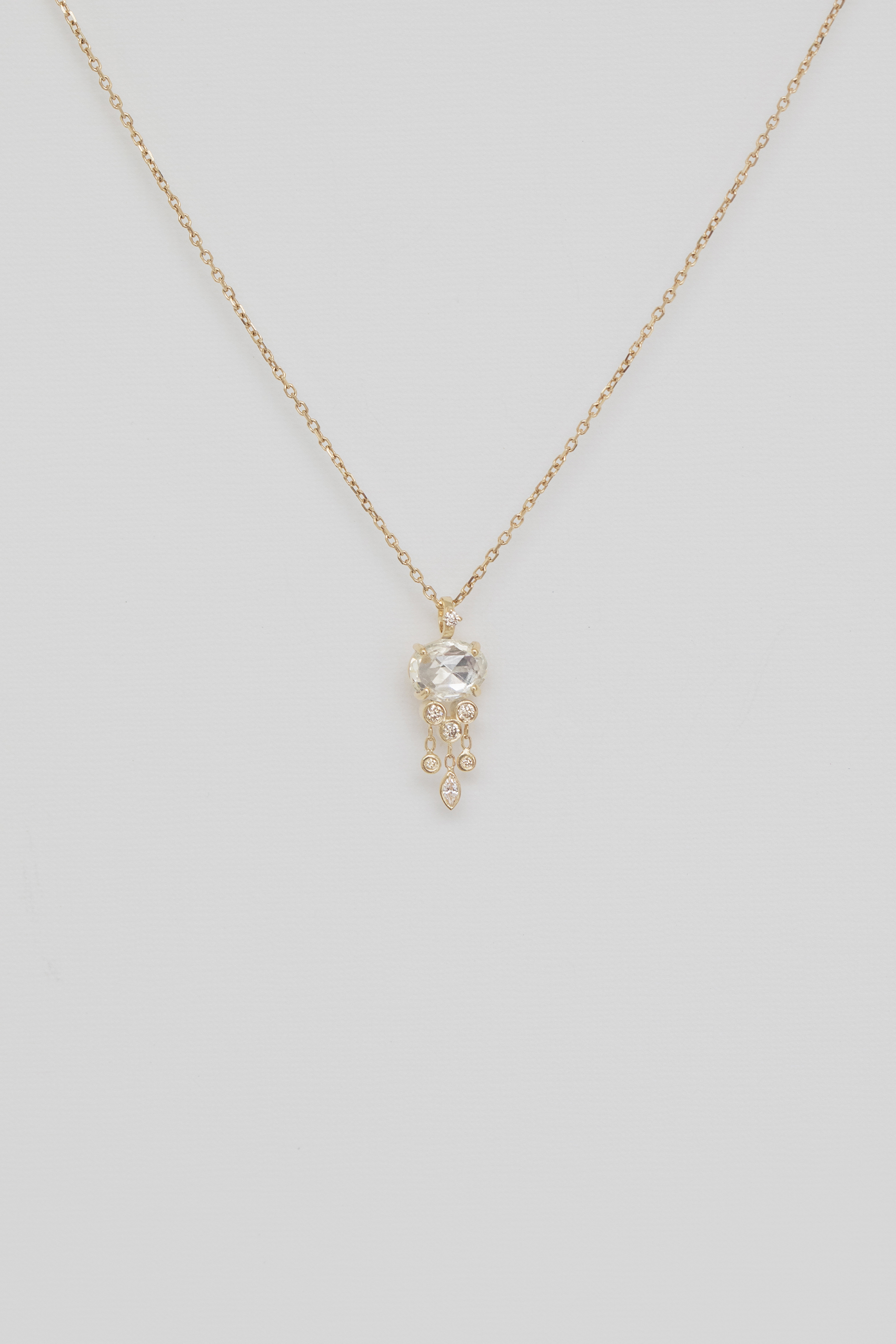 Celine Daoust 14k light yellow gold chain jellyfish necklace with one light yellow sapphire and dangling diamonds.