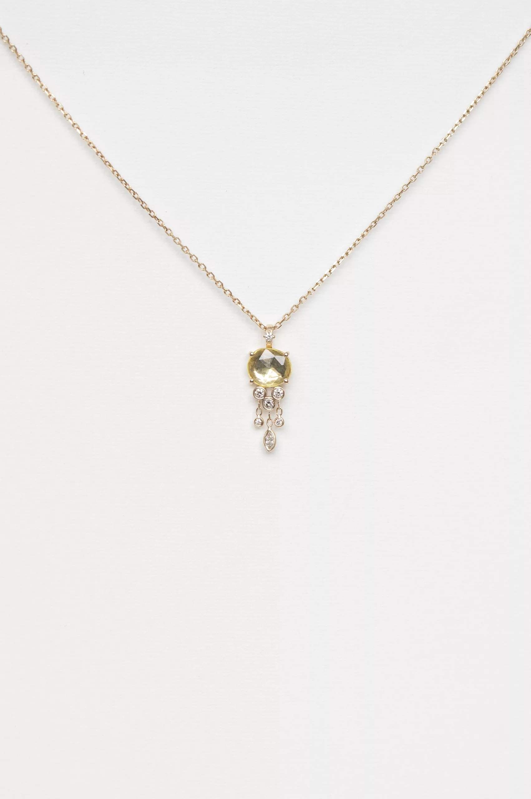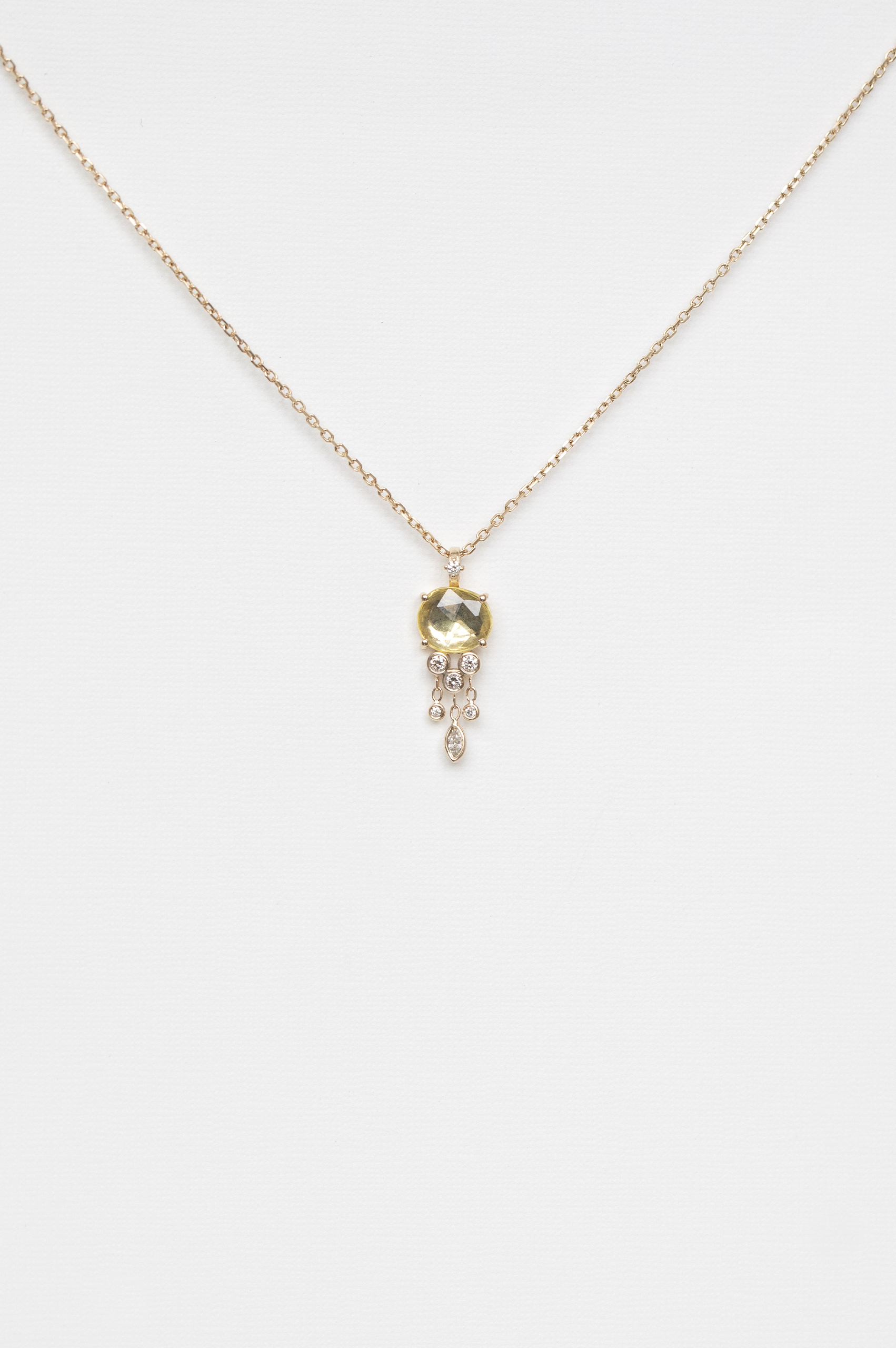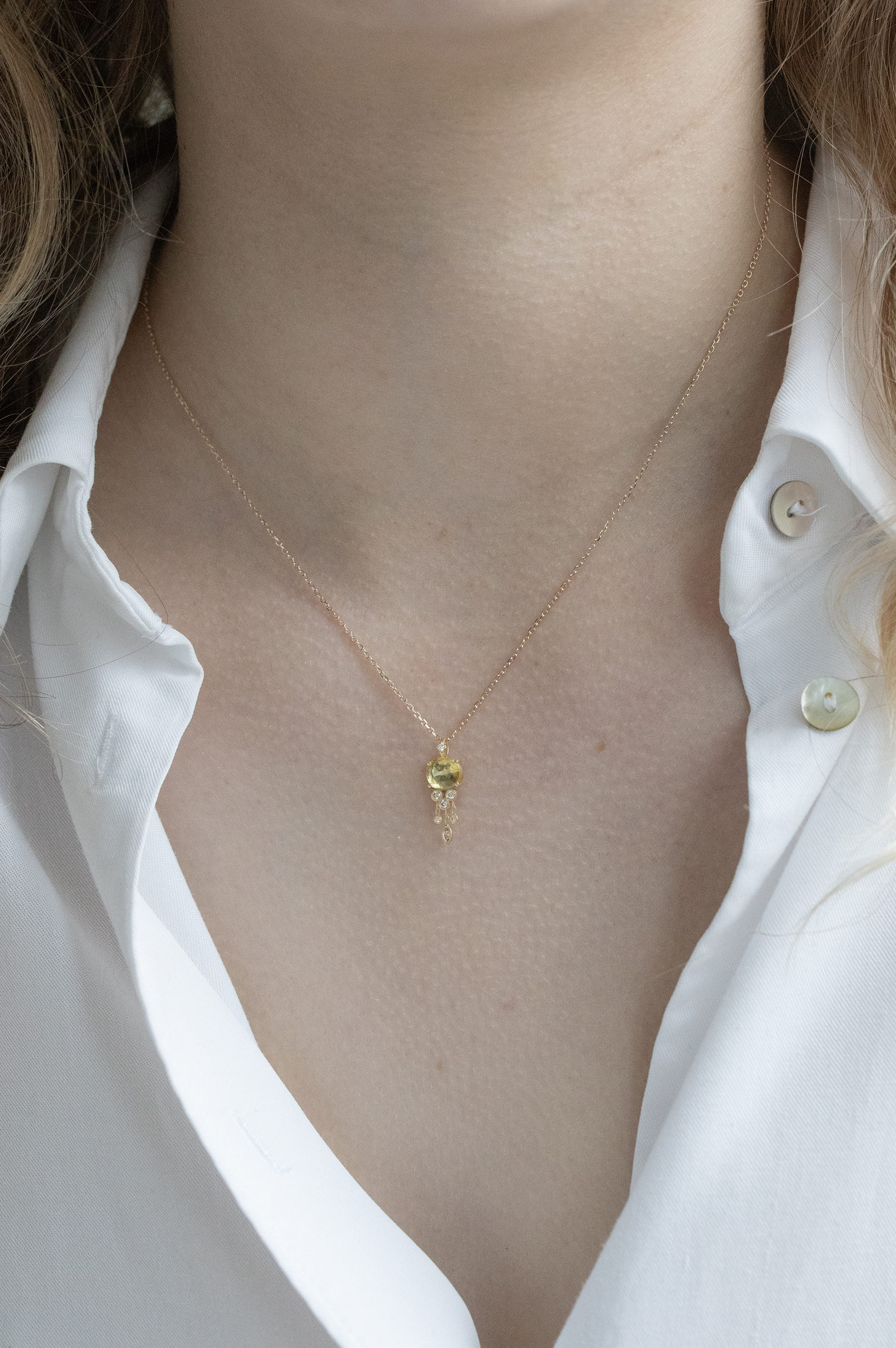 Celine Daoust 14k light yellow gold chain jellyfish necklace with one yellow sapphire and dangling diamonds.