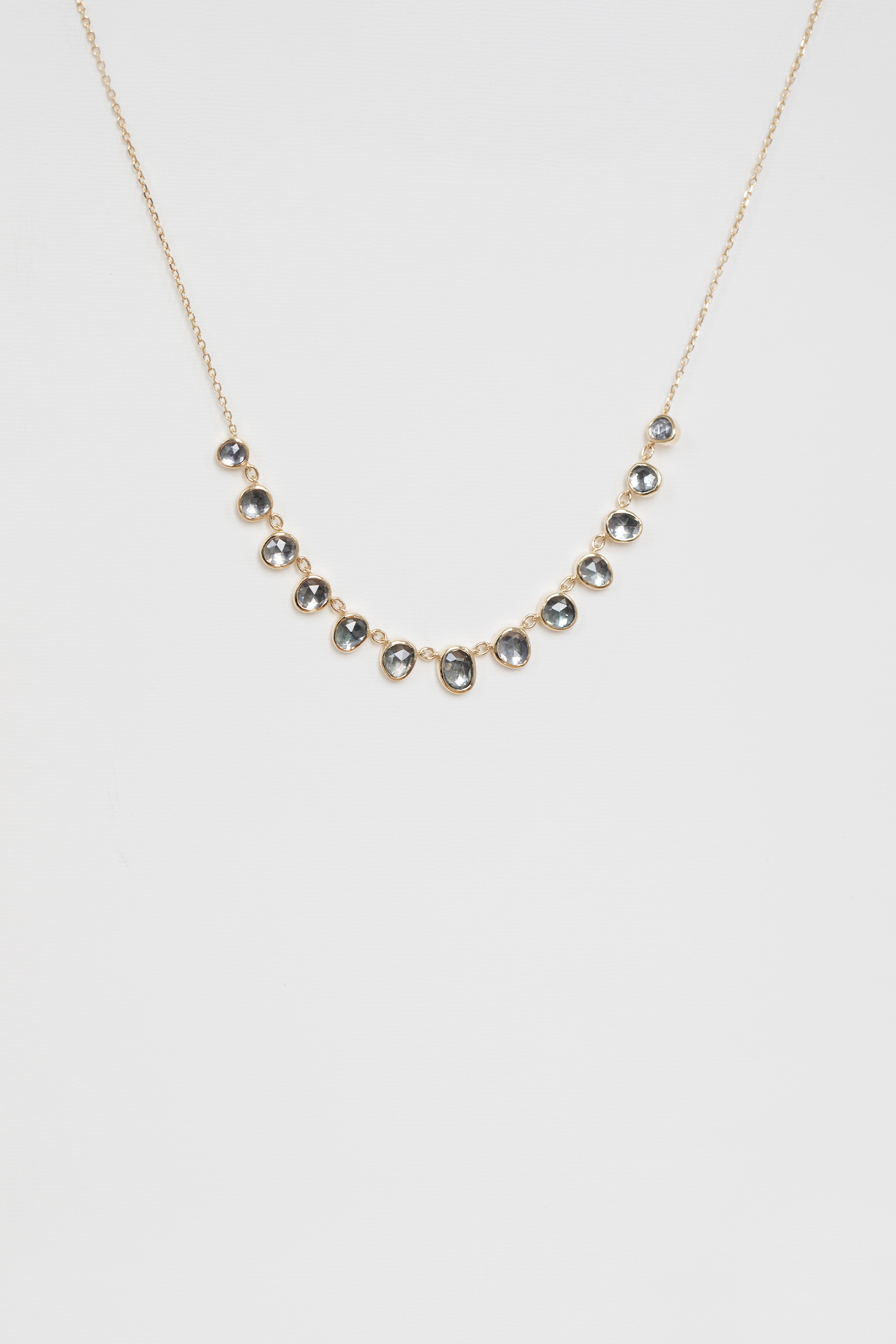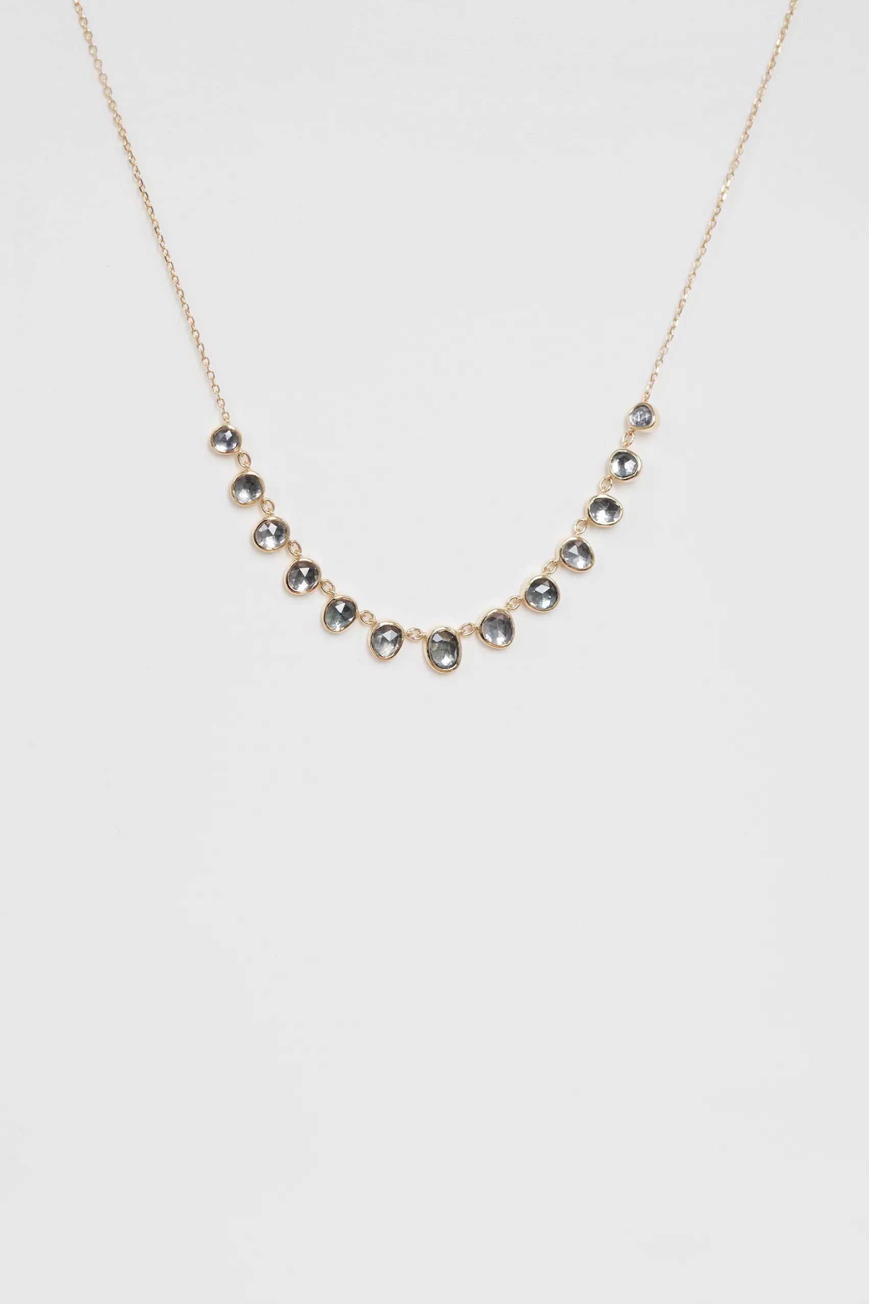 Celine Daoust 14k light yellow gold multi dark purple spinel necklace. The stones come in a gradient of dark purple and grey.