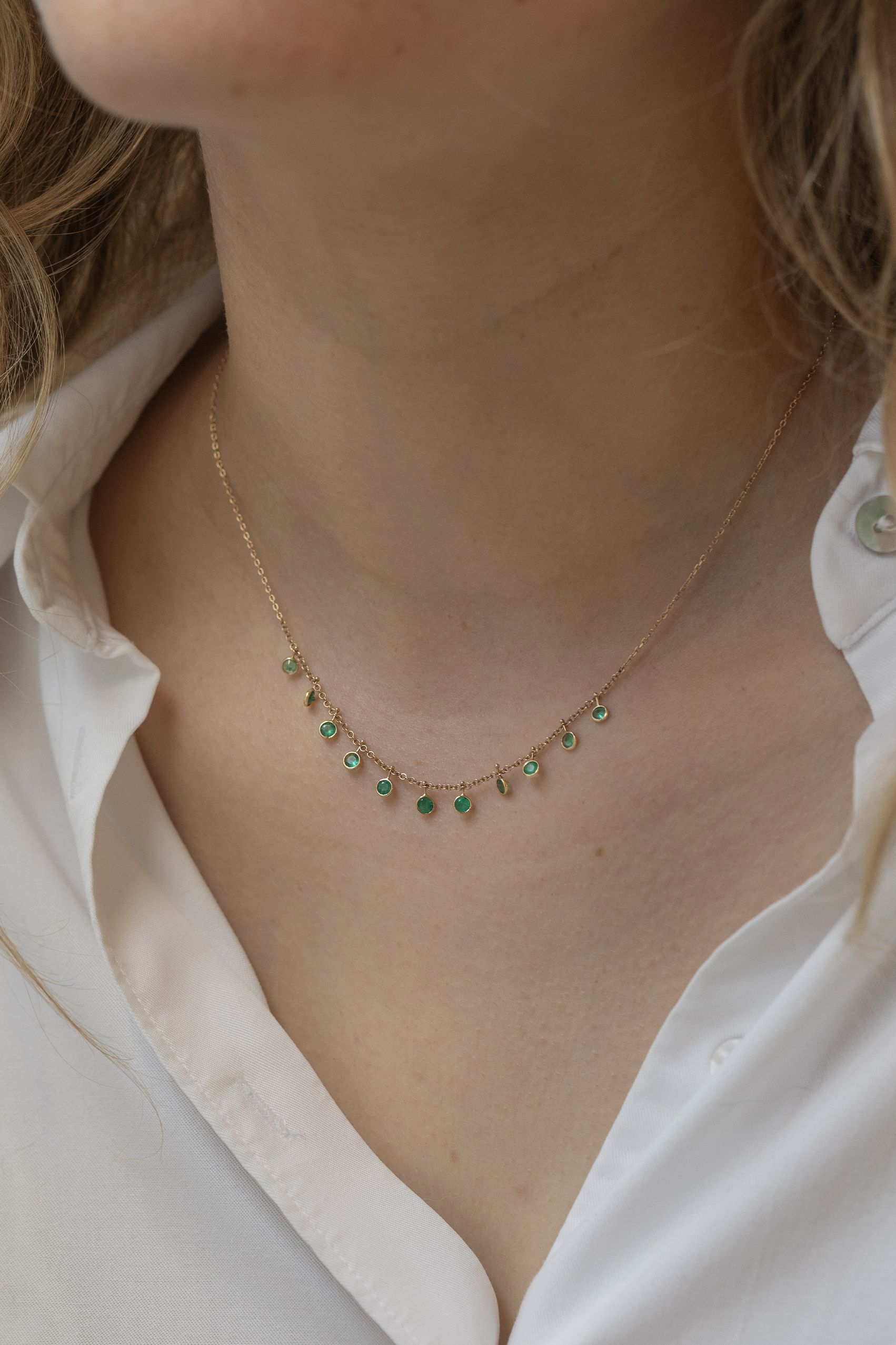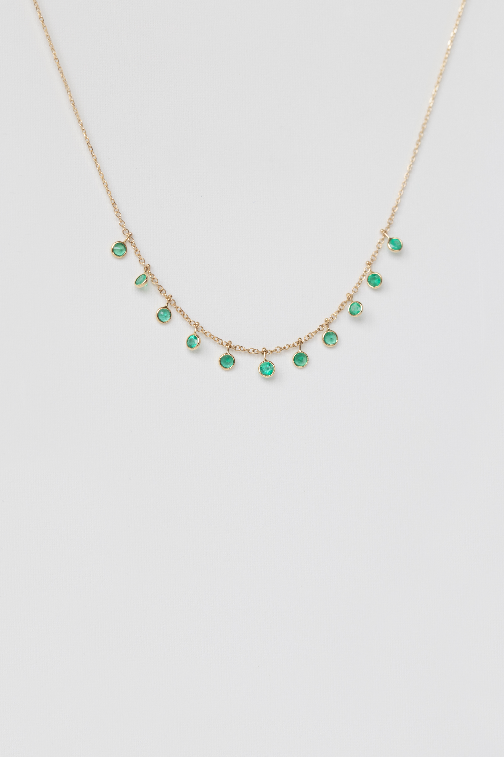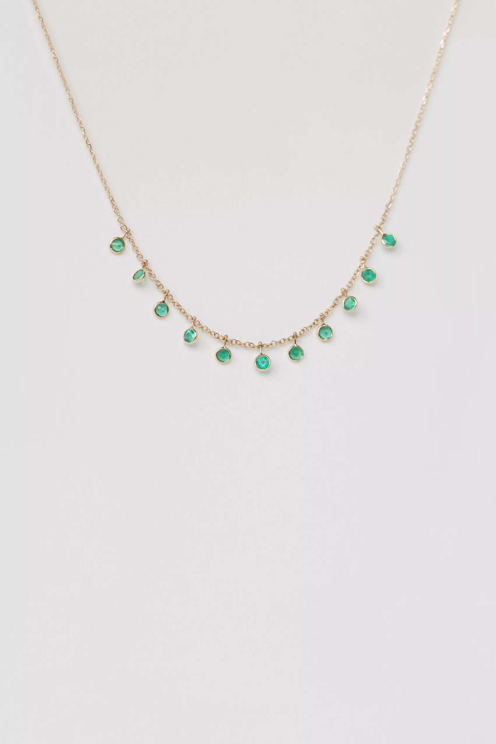 Celine Daoust 14k light yellow gold chain necklace with emerald rosecut. The stone color is an intense green.