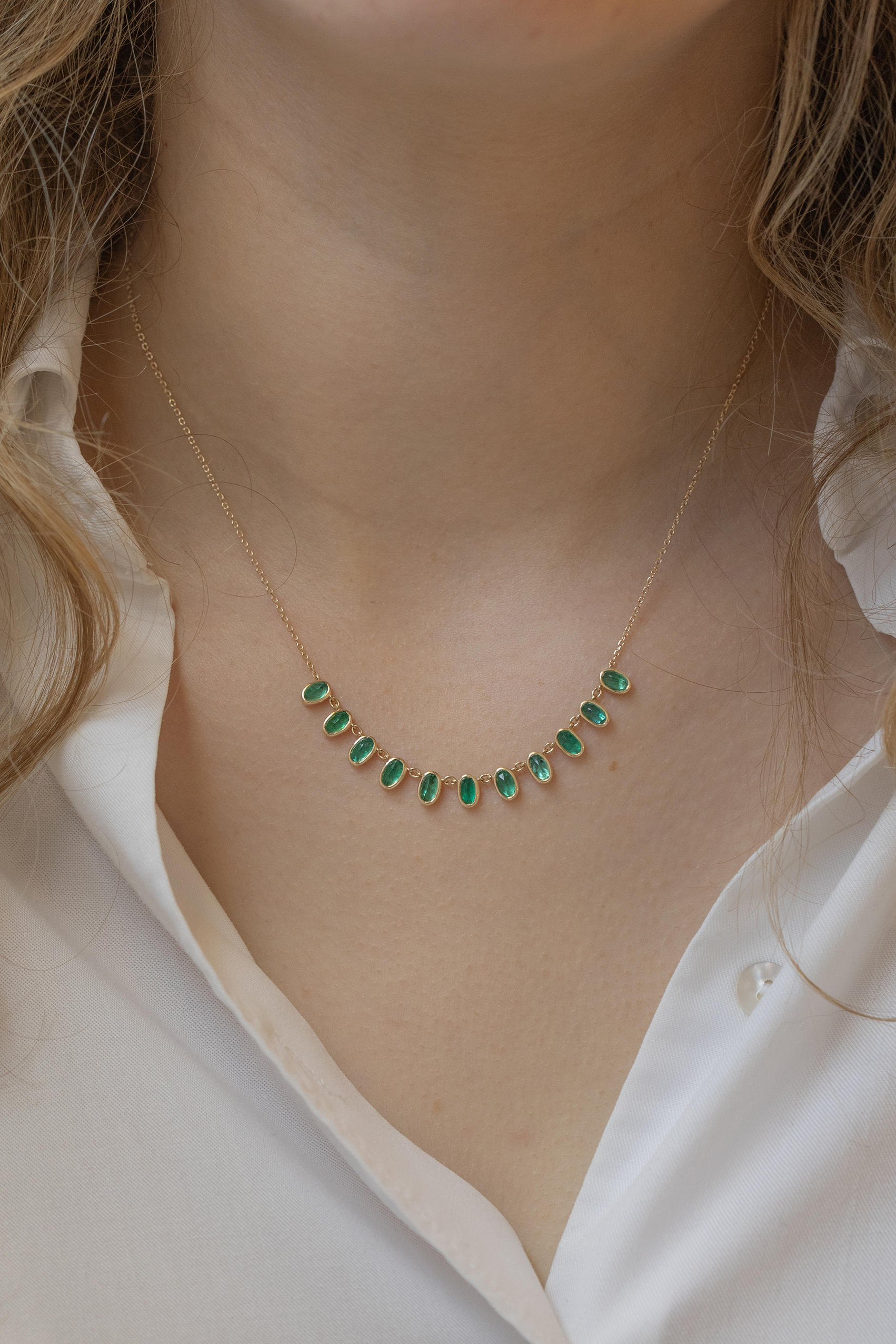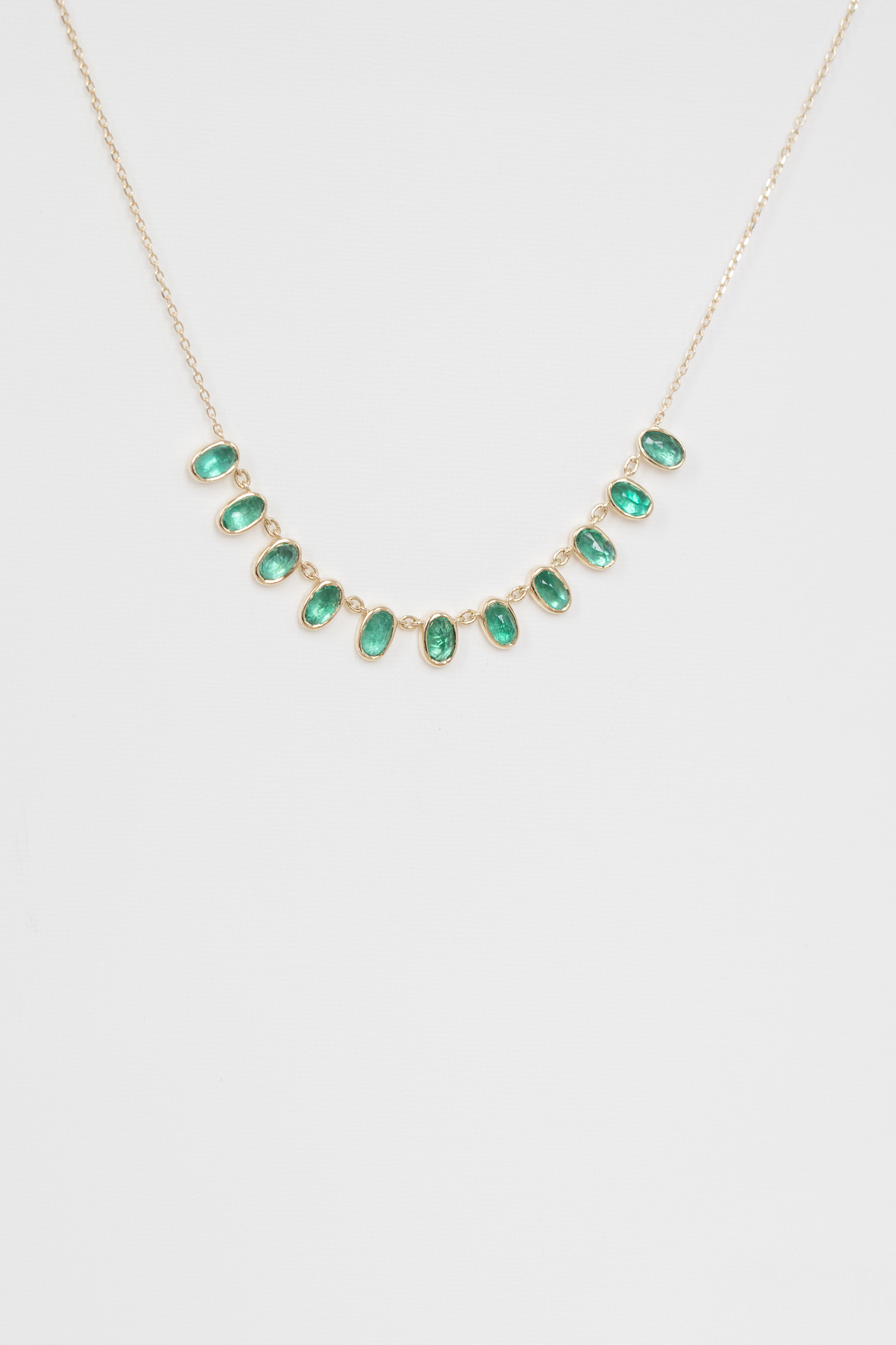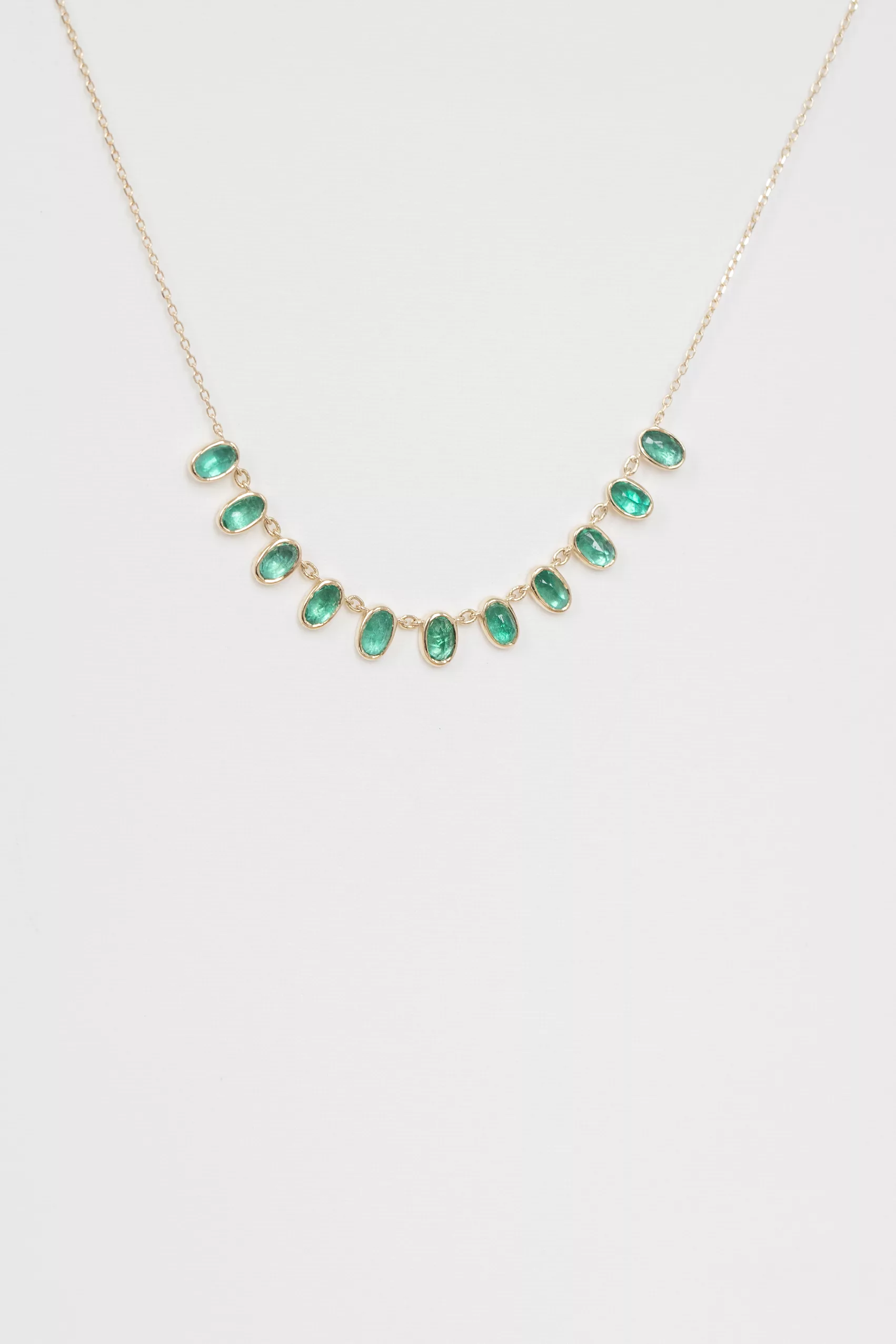 Celine Daoust 14k light yellow gold eleven emeralds necklace. The stones come in an intense green.