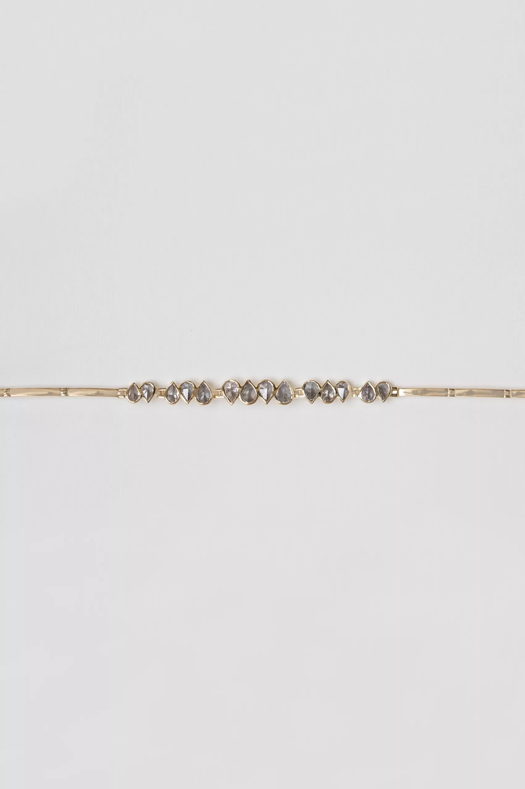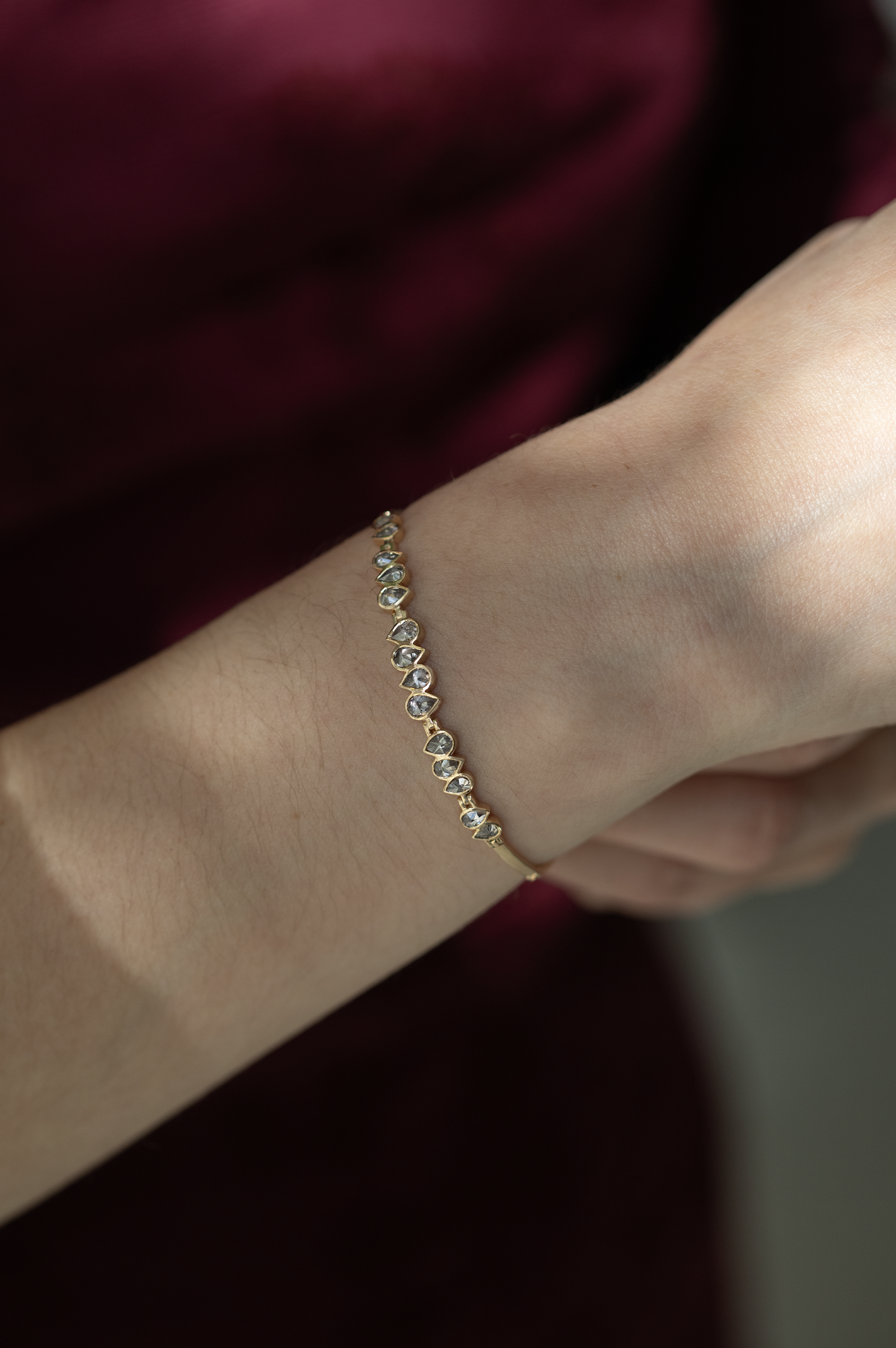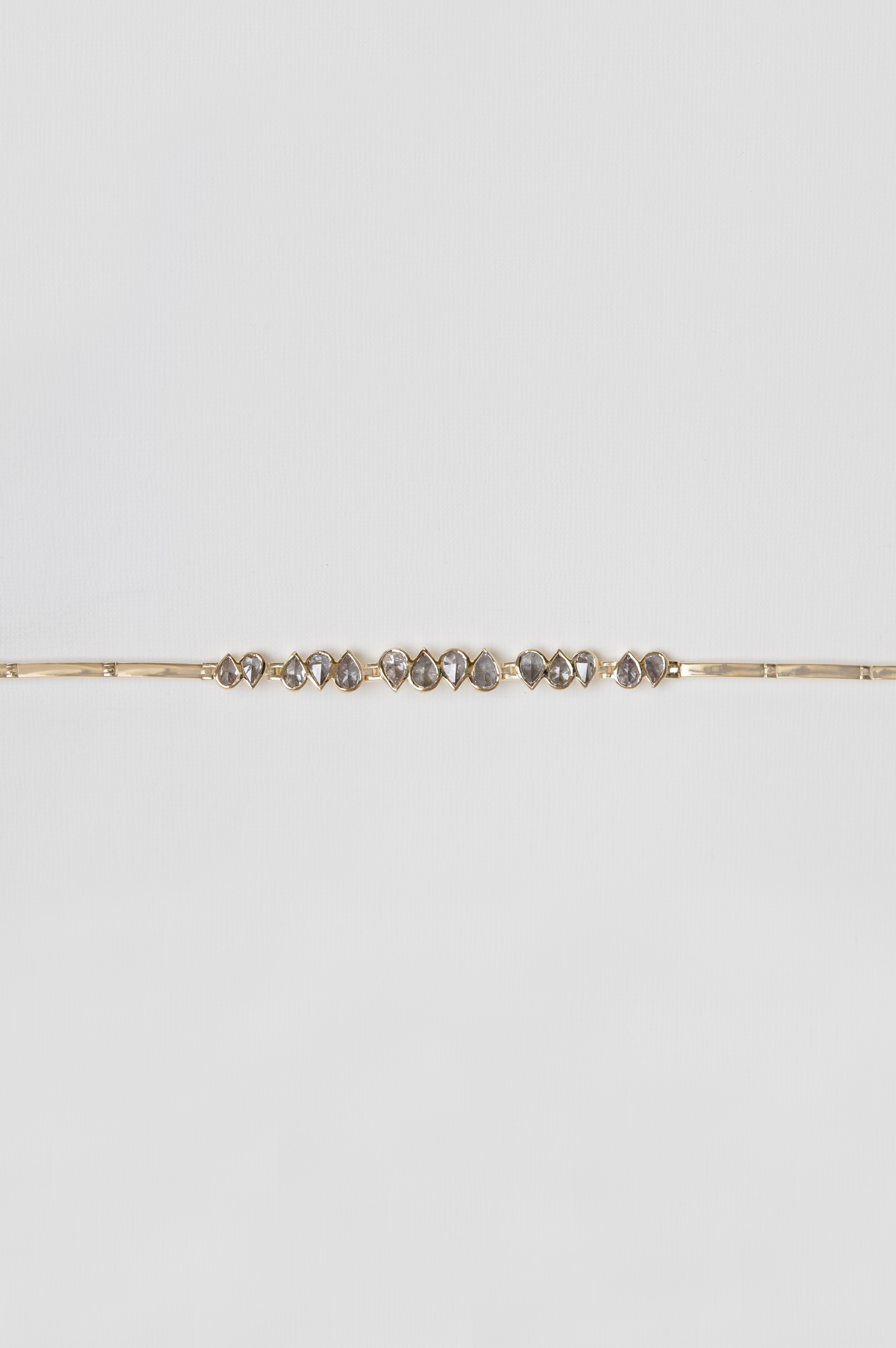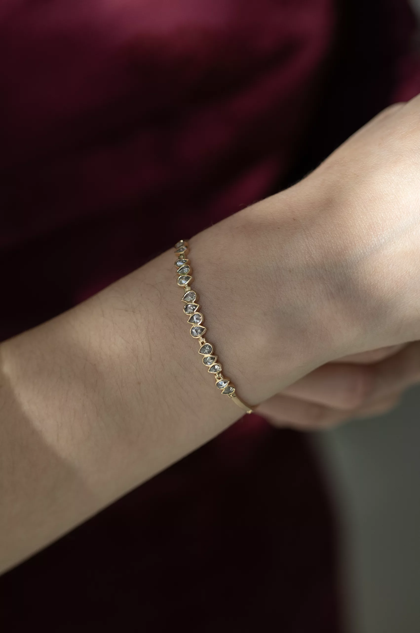 Celine Daoust 14k light yellow gold articulated bracelet with rosecut pinkish grey diamonds. The stones come in a gradient of light grey and light pink.