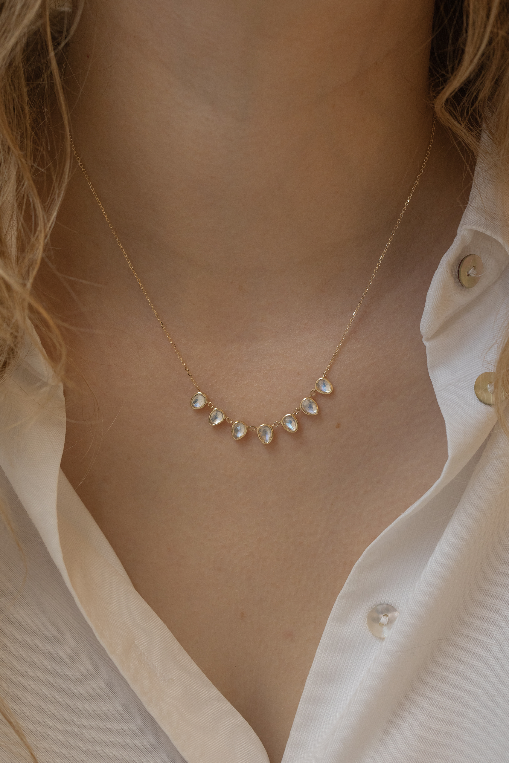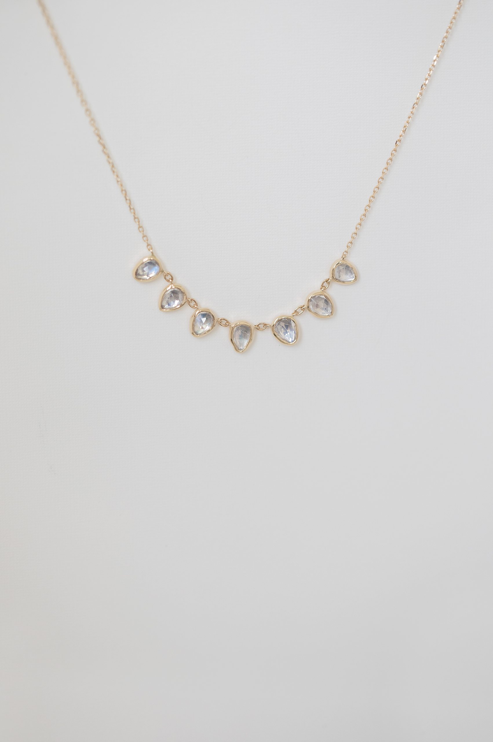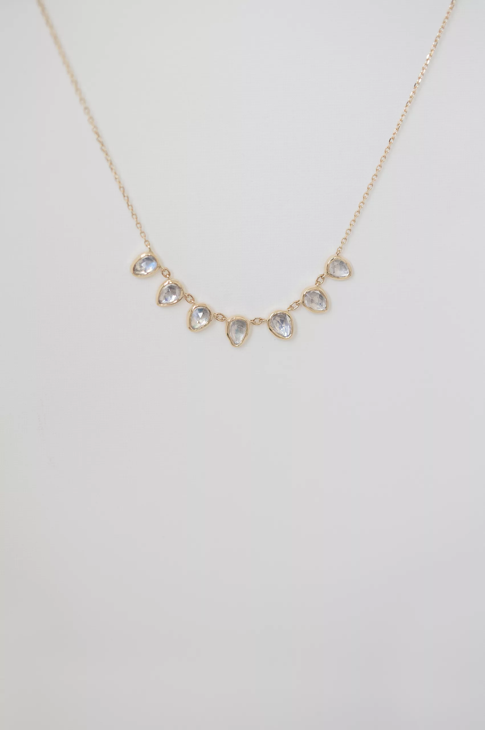 Celine Daoust 14k light yellow gold multi 7 moonstone necklace.