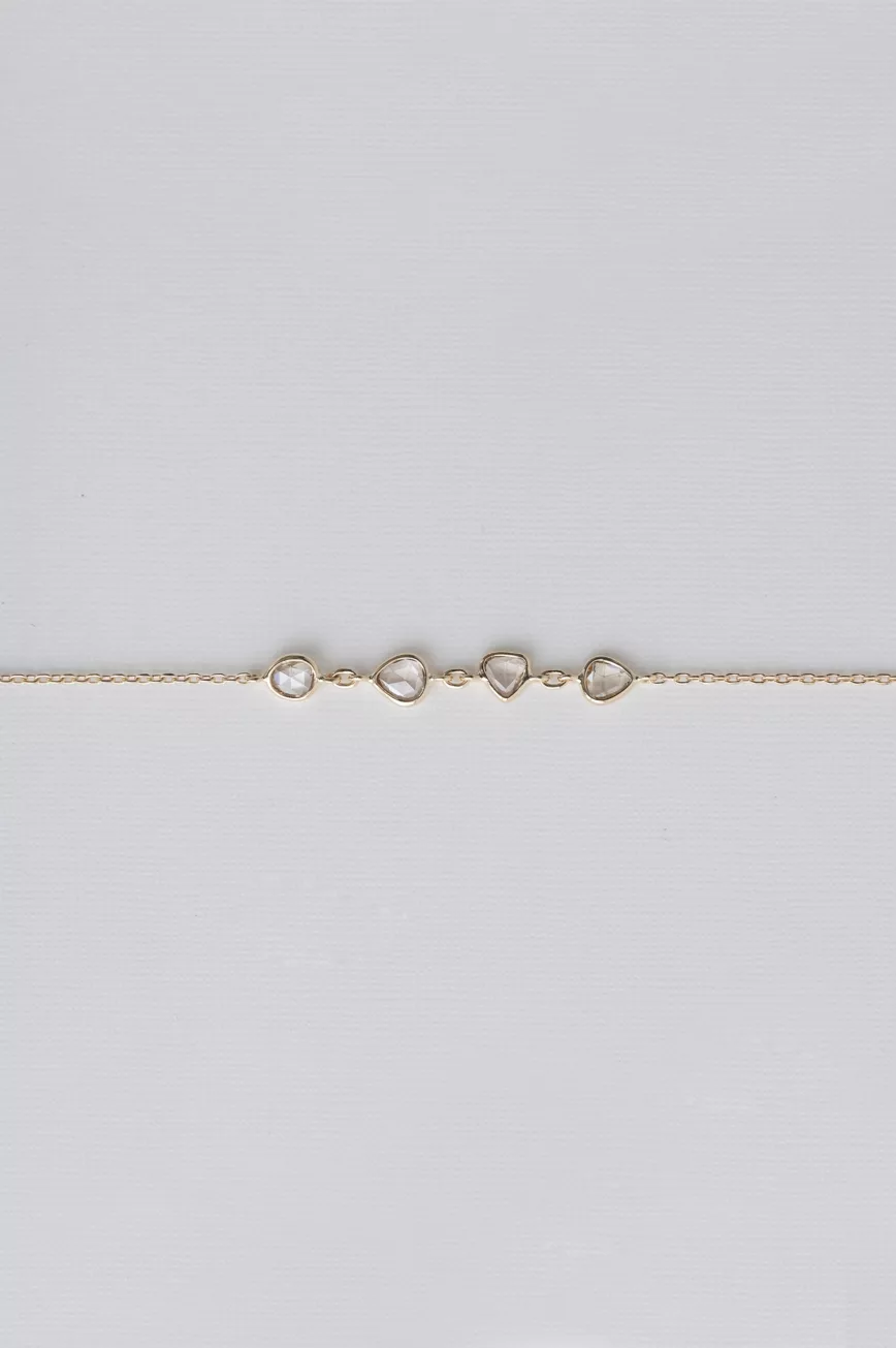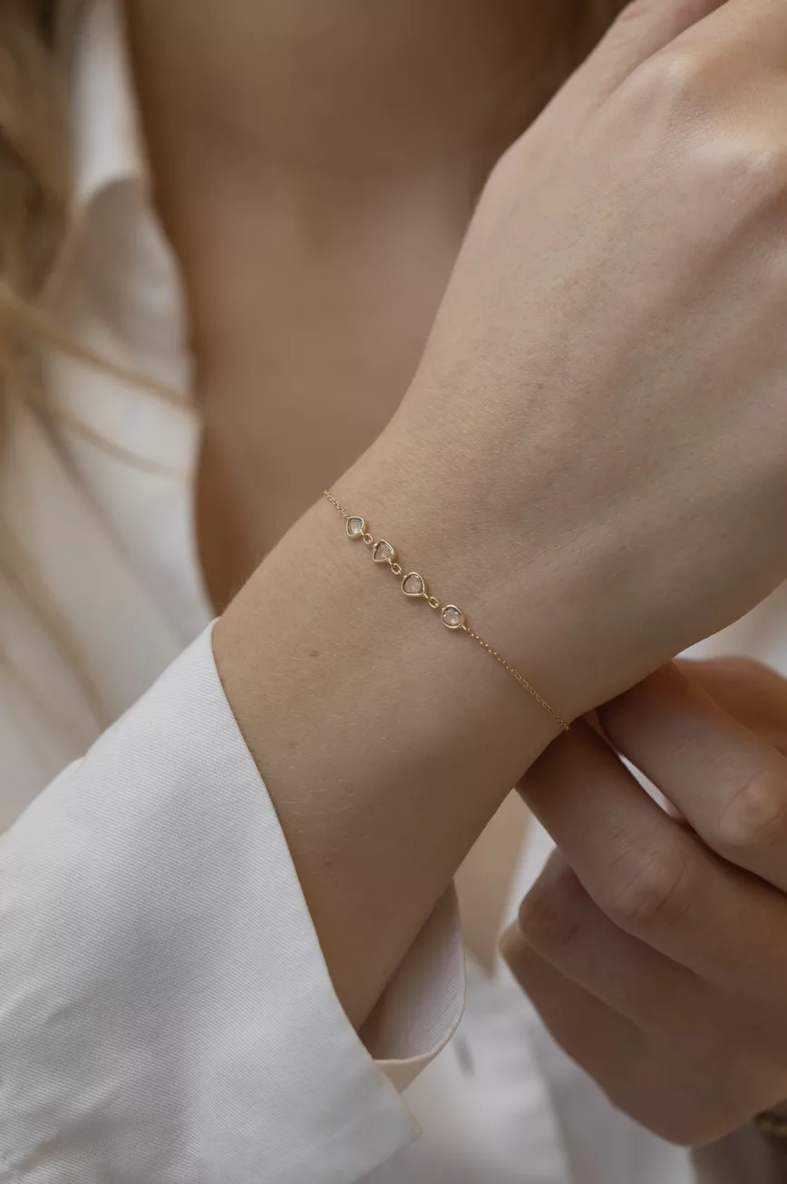 Celine Daoust 14k light yellow gold bracelet with four tourmalines. The stones come in a gradient of light pink and green.