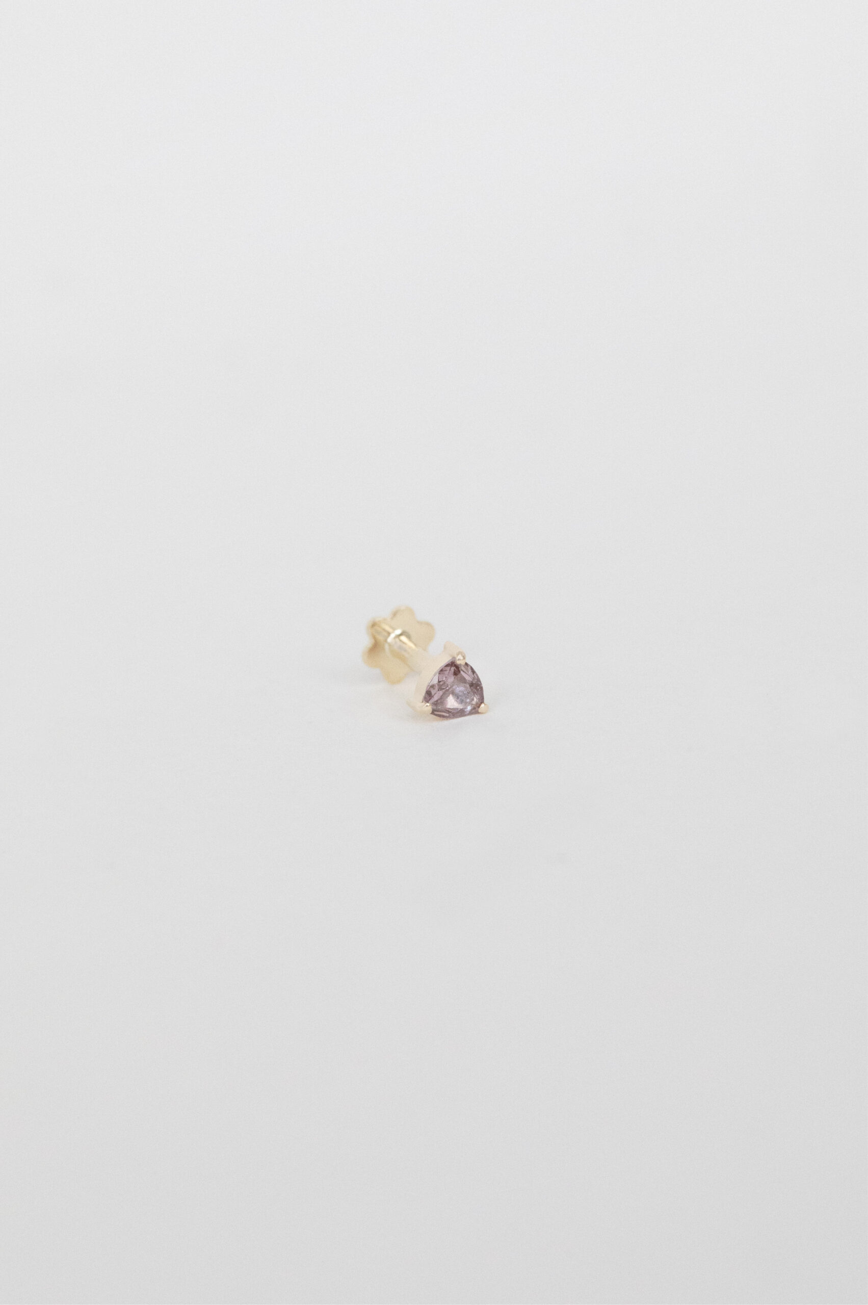 Celine Daoust 14k light yellow gold piercing with a one of a kind parme spinel stone. The stone comes in a gradient of grey and purple.