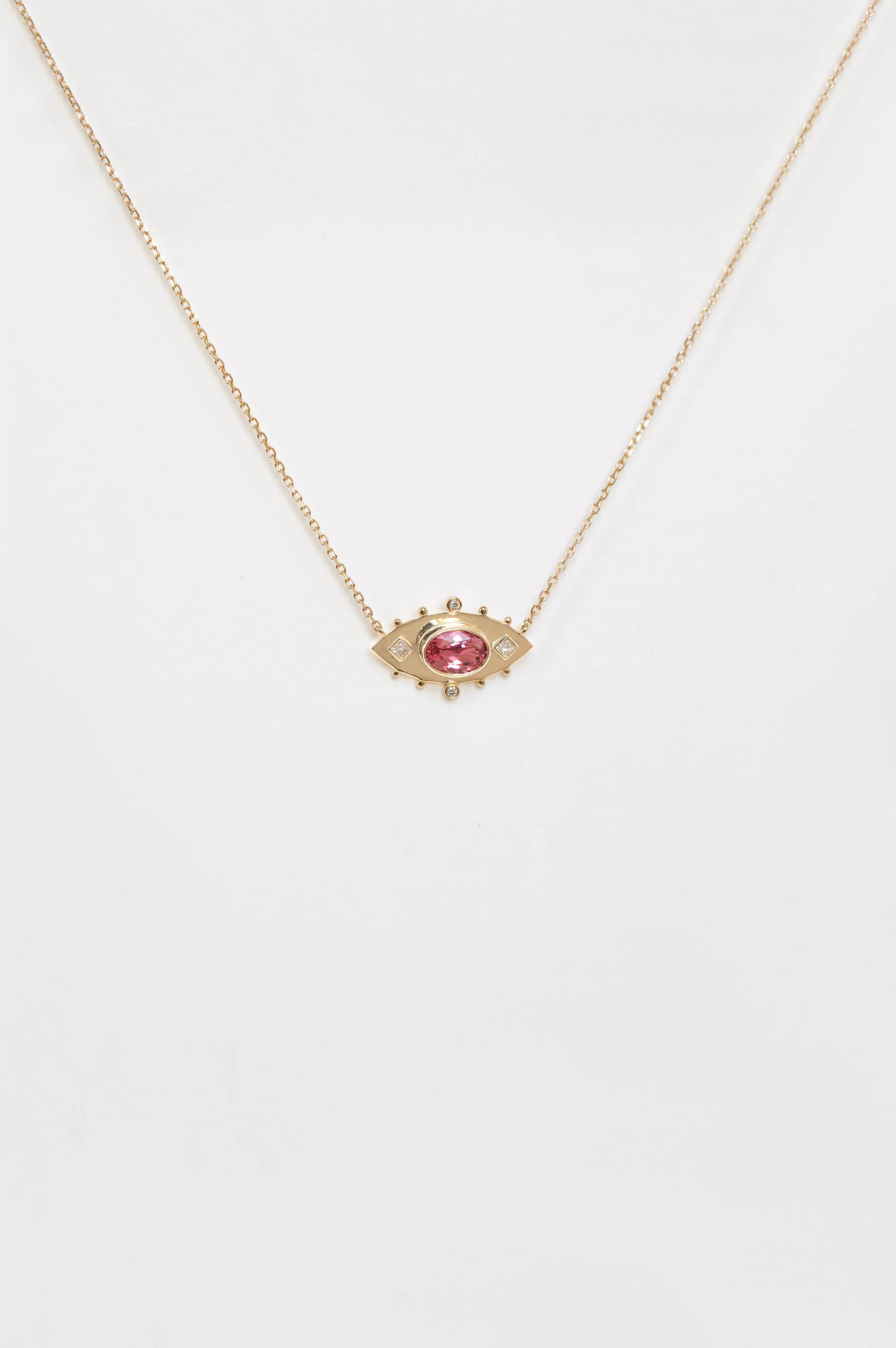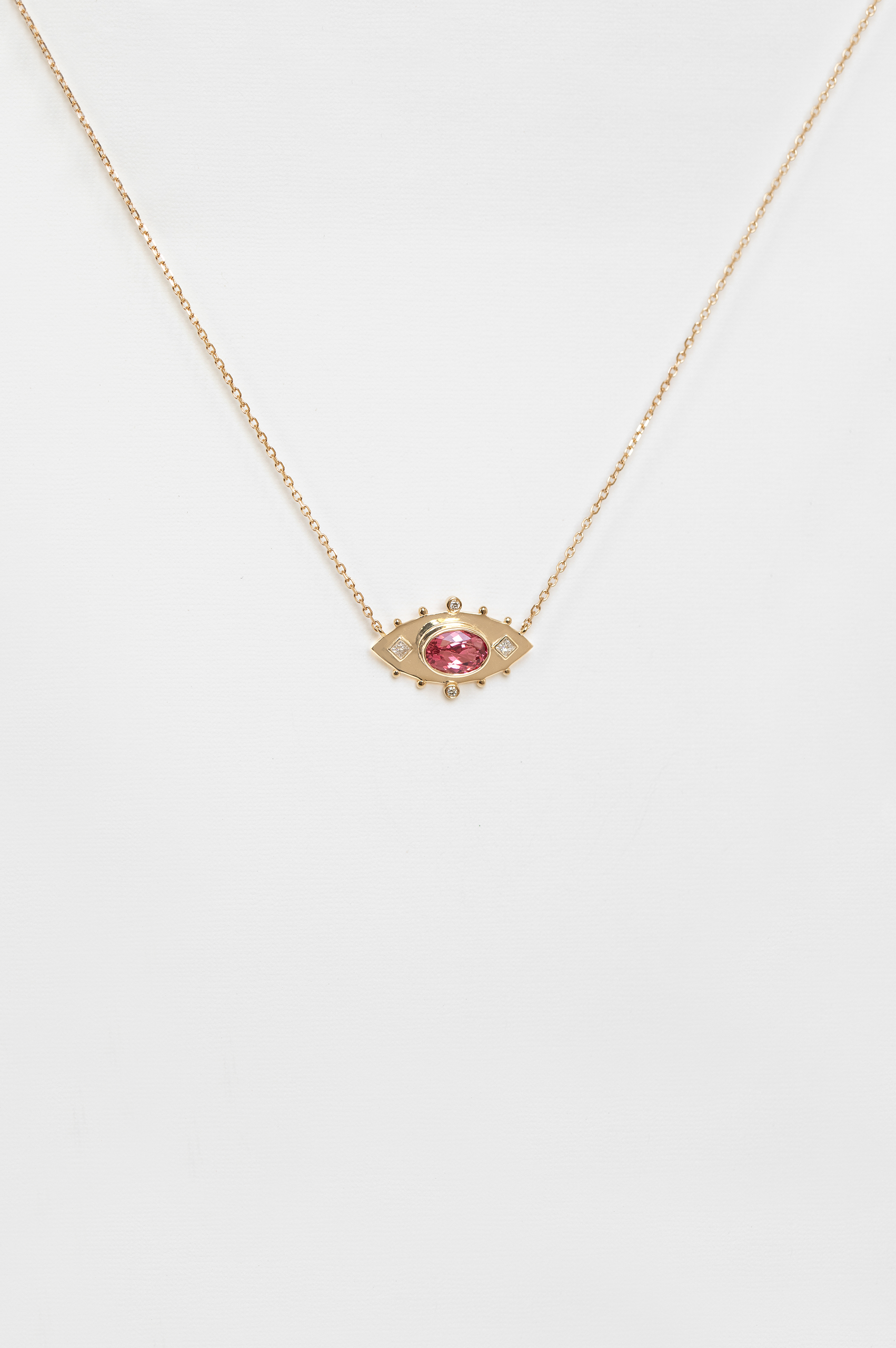 Celine Daoust 14k light yellow gold necklace with one oval red spinel and diamonds.