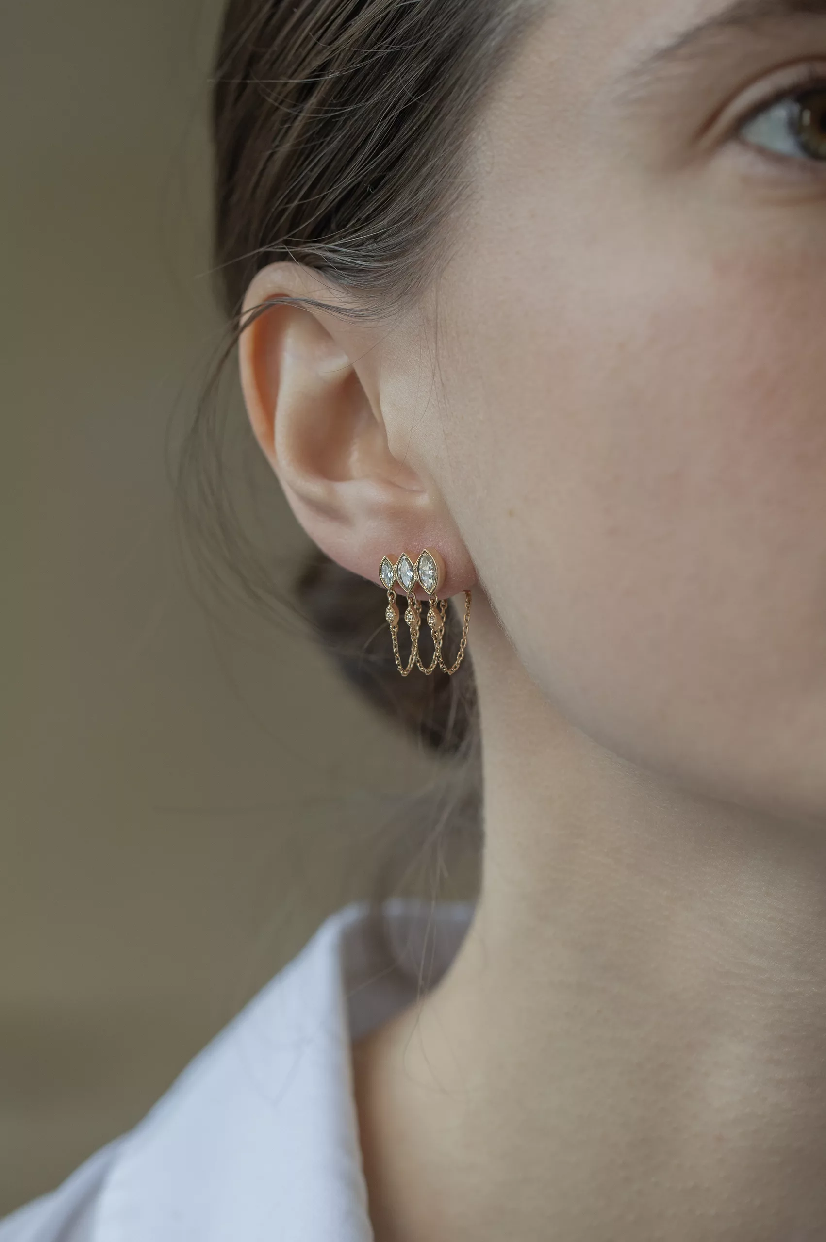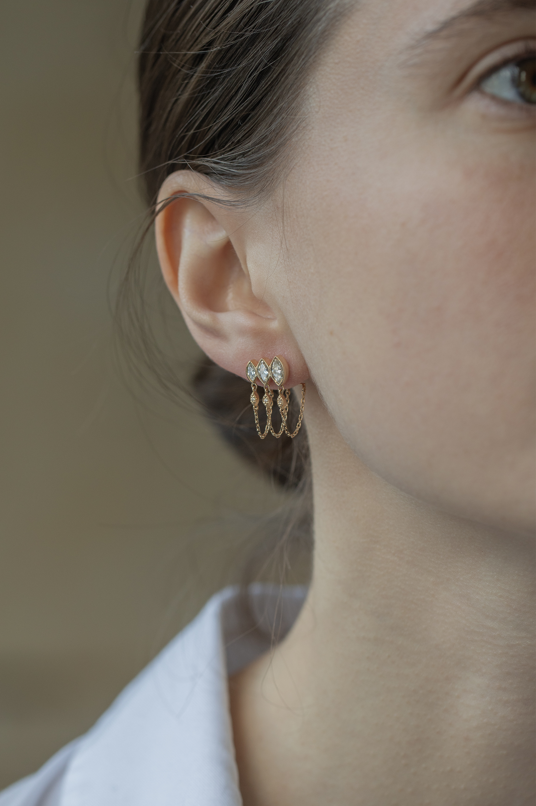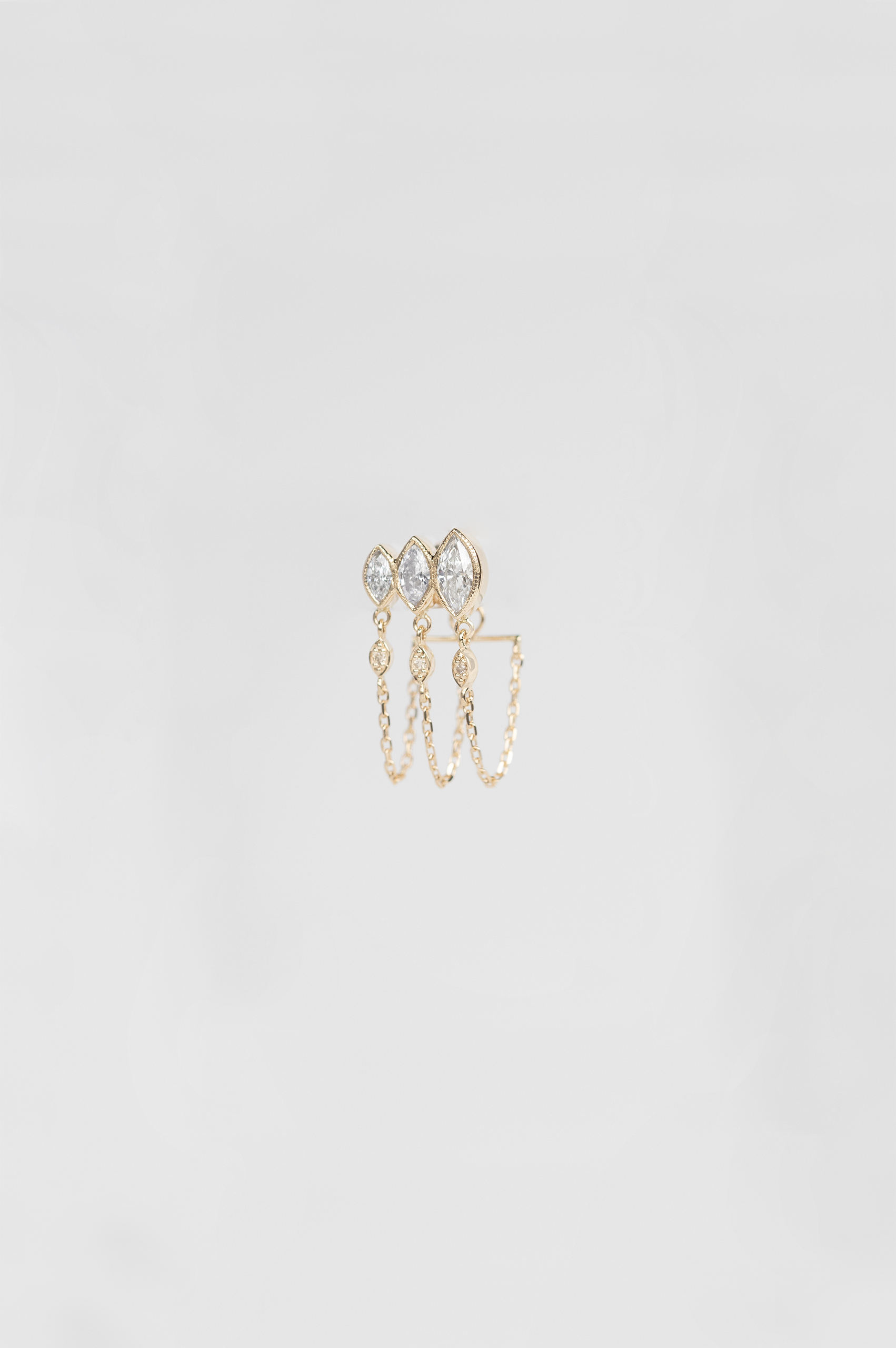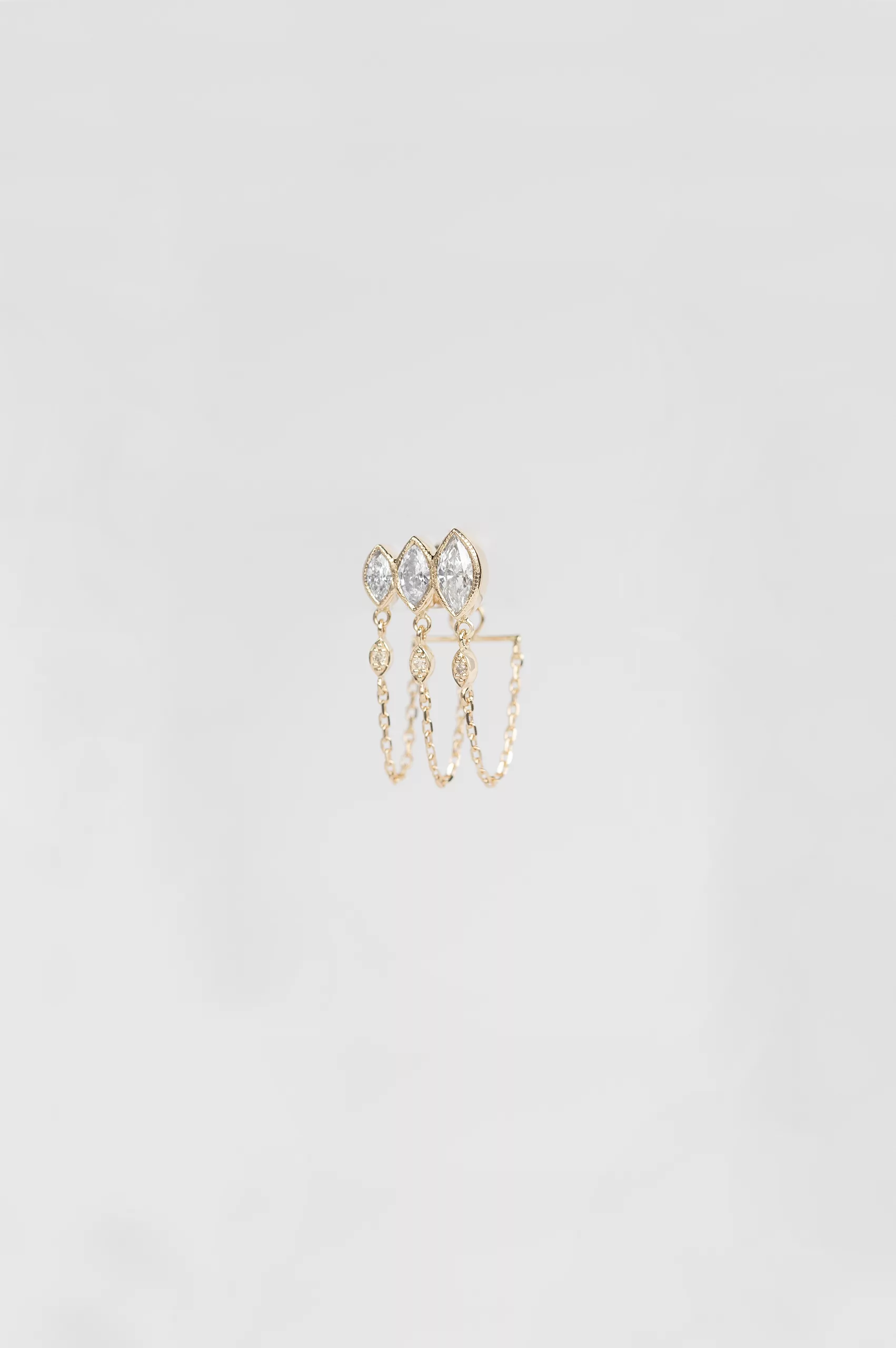 Celine Daoust 14k light yellow gold with 3 marquise diamonds and diamond eyes single chain earring.