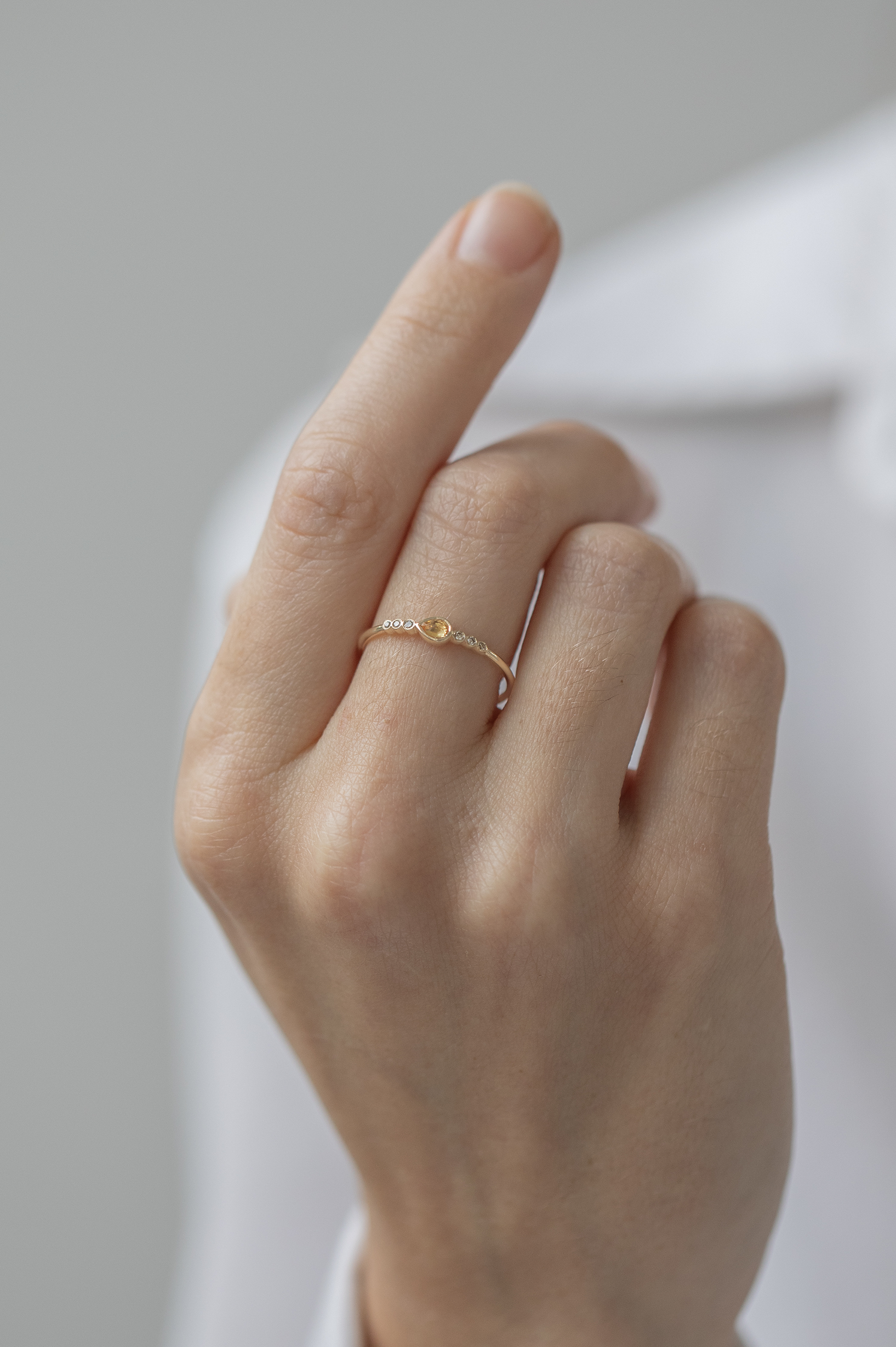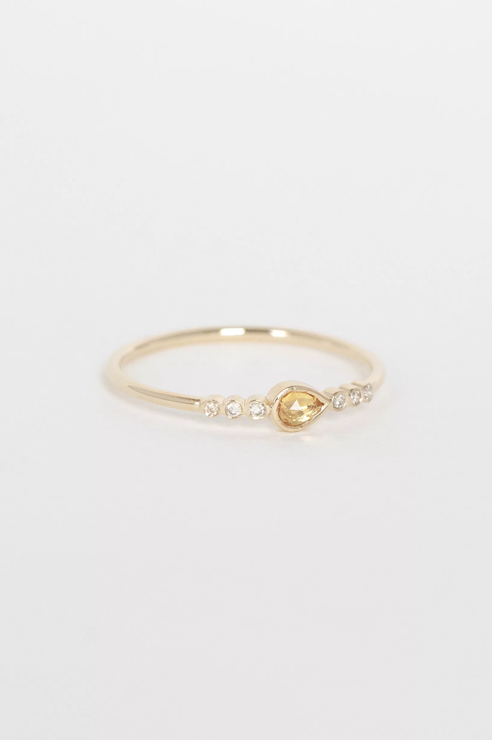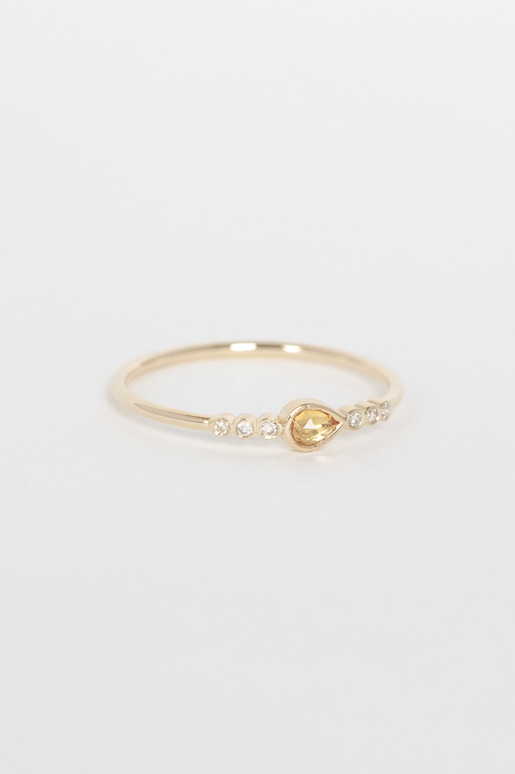 Céline Daoust 14k light yellow gold with one central yellow sapphire and six diamonds. The stone comes in a gradient of light yellow.