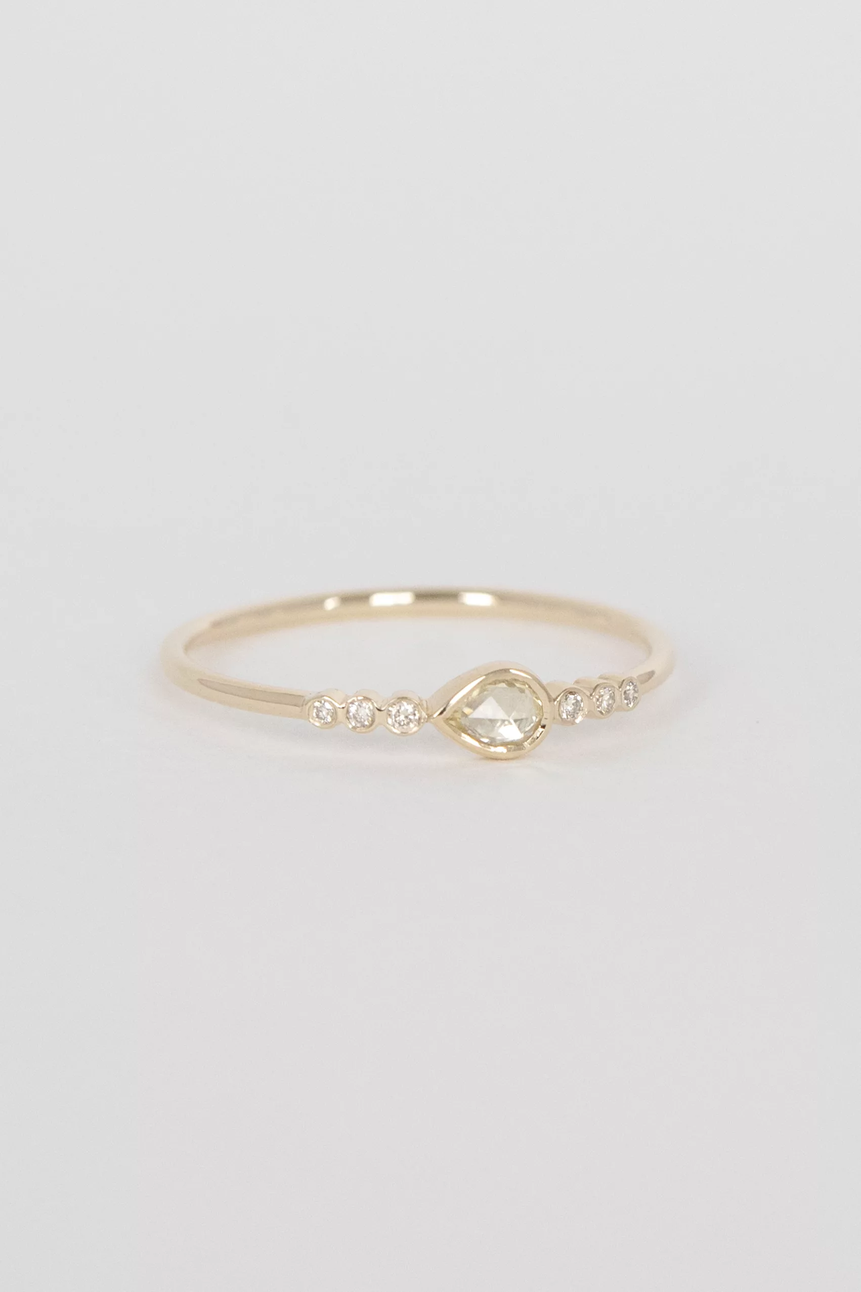 Céline Daoust 14k light yellow gold with one central light yellow sapphire and six diamonds. The stone comes in a gradient of light yellow.